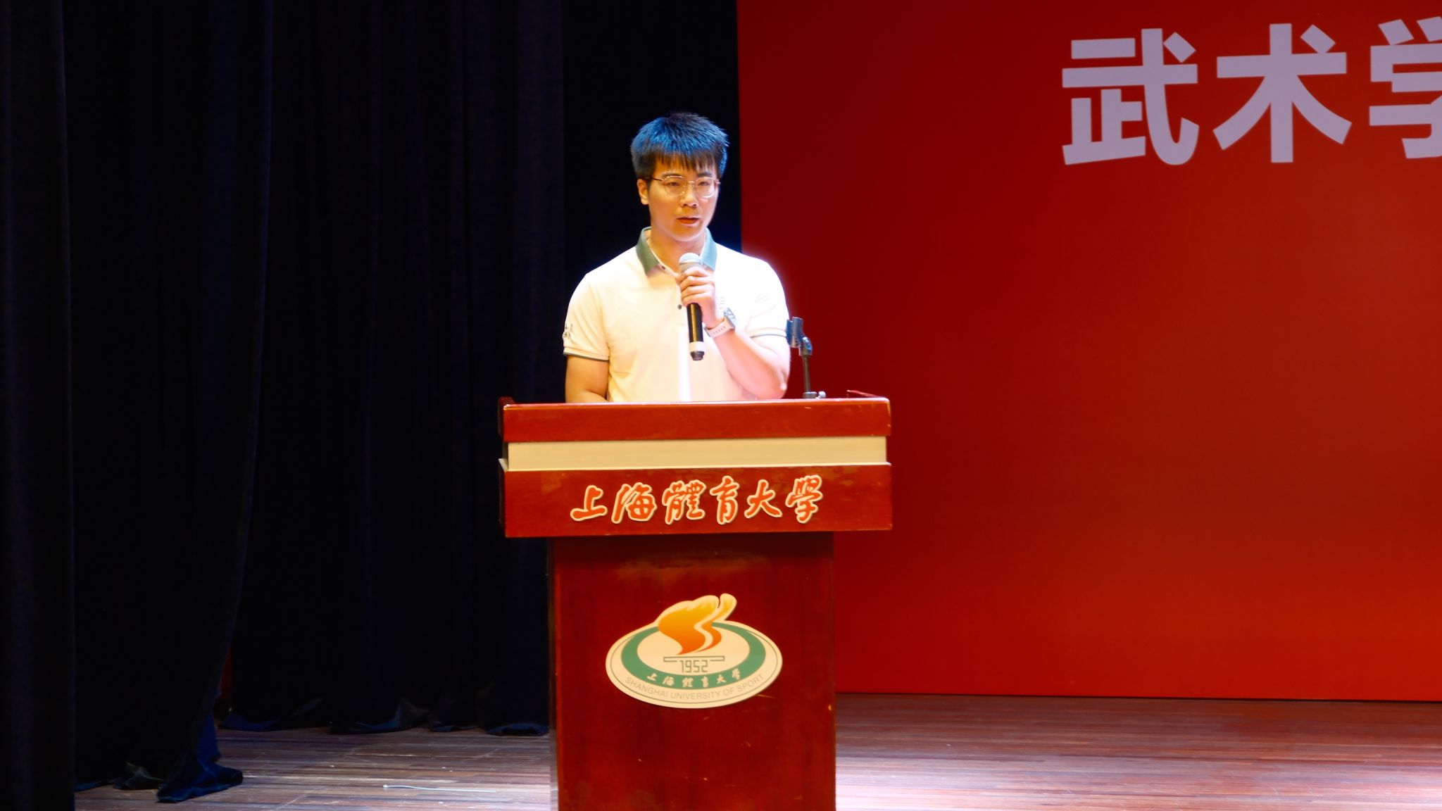 武术学院2024级博士研究生陈思凡、本科生王呈祥分别代表新生发言。他们代表全体新生向学院和老师们表示了衷心的感谢,满怀激情地表达了自己对大学生活的憧憬和期待。他们表示,将秉承“博学约礼、习武立德”的传统,用实际行动践行“德技兼修、文武并进”的院训,秉持不懈奋斗的初心,勇于探索、敢于创新,为学校、学院的发展添砖加瓦,为武术事业发展贡献伟德武术青年的力量。