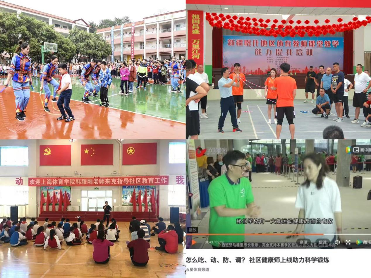 近年来,党支部以“项目育人”为载体,对接全民健身国家战略,促进社会体育与休闲体育事业发展。支部党员教师发挥专业优势,在花样跳绳、高尔夫、攀岩、曲棍球、健身操舞、龙舟、空竹、毽球等专业方面获得国内外多项冠军。在此基础上,通过送培进校园培训了上海市16个区的500多所学校1200多名教师;通过“社区健康师”“体育+公园”等项目深入社区为居民提供健身指导,开展科普服务,并获得全国首批优秀体育科普作品奖和群众体育展演金奖;寒暑假带学生赴新疆喀什、克拉玛依、乌鲁木齐等地进行公益援疆,以实际行动服务社会的同时也开创了“体育育人”新方式,进一步将三全育人融入社会大循环,把育人大文章做在了为人民服务和社会发展第一线。