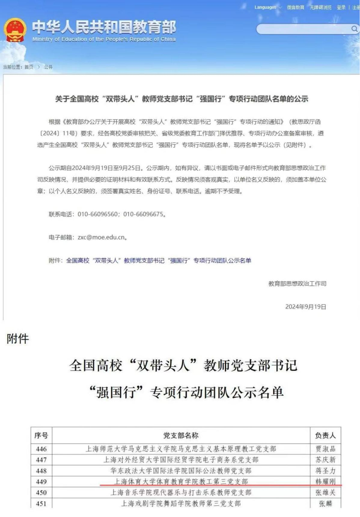 本网讯 日前,教育部办公厅公布《关于全国高校“双带头人”教师党支部书记“强国行”专项行动团队名单的公示》,体育教育学院教工第三党支部入选。