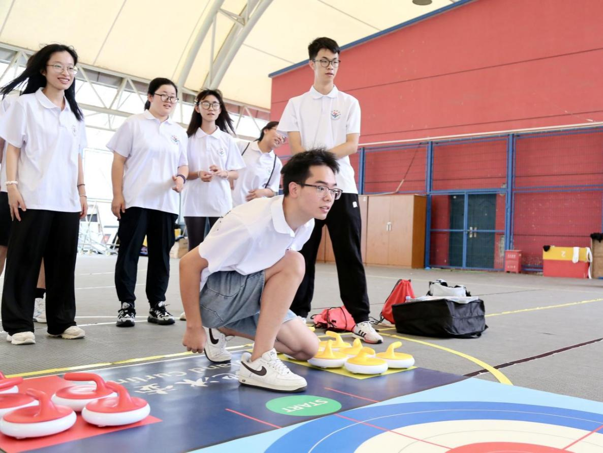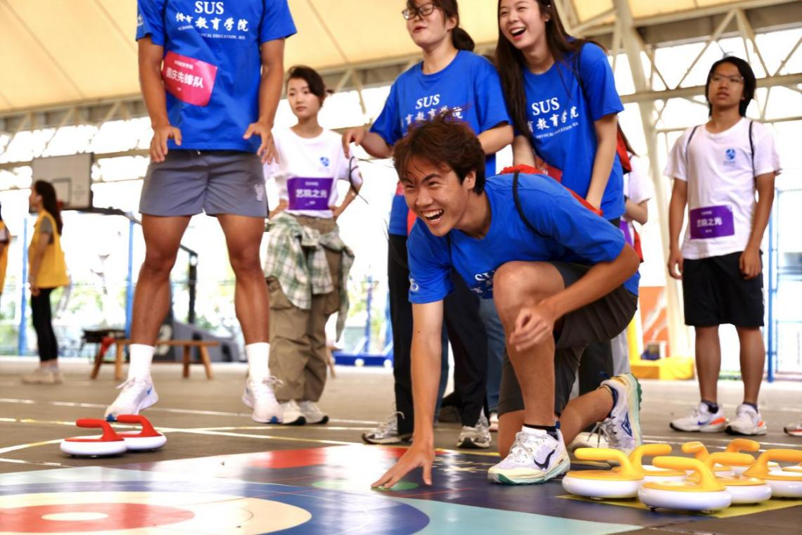 室内田径场、风雨篮球场、中乒院,来自全校各二级学院的16支新生队伍,在各个活动场馆间穿梭,他们团结协作,挥洒汗水,全情投入到激烈的比赛中。通过红色知识问答与体育运动闯关相结合的形式,同学们不仅体验了乒乓球、冰壶等体育项目的魅力,还深刻感受到了我国体育事业的蓬勃发展,进一步激发了对体育运动的热爱。