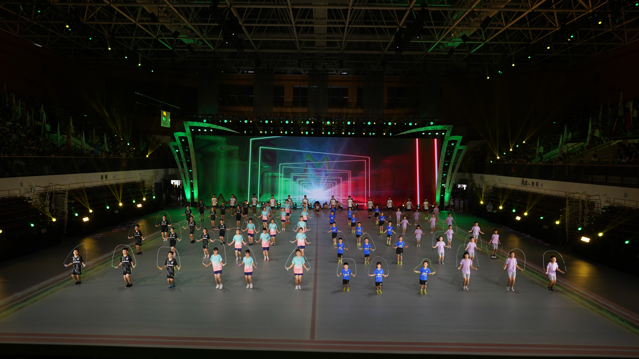 本网讯 秋风送爽,激情飞扬,2024年上海市学生运动会开幕式于9月28日在上海财经大学体育馆举行。在这一场体育与青春的盛宴中,伟德花样跳绳队的20名队员携手上海财经大学及宝山区4所中小学的60名学生,以其眼花缭乱的绳技和花样创意,为开幕式献上了一场精彩的花样跳绳技能展示,赢得了现场观众的阵阵掌声与喝彩。