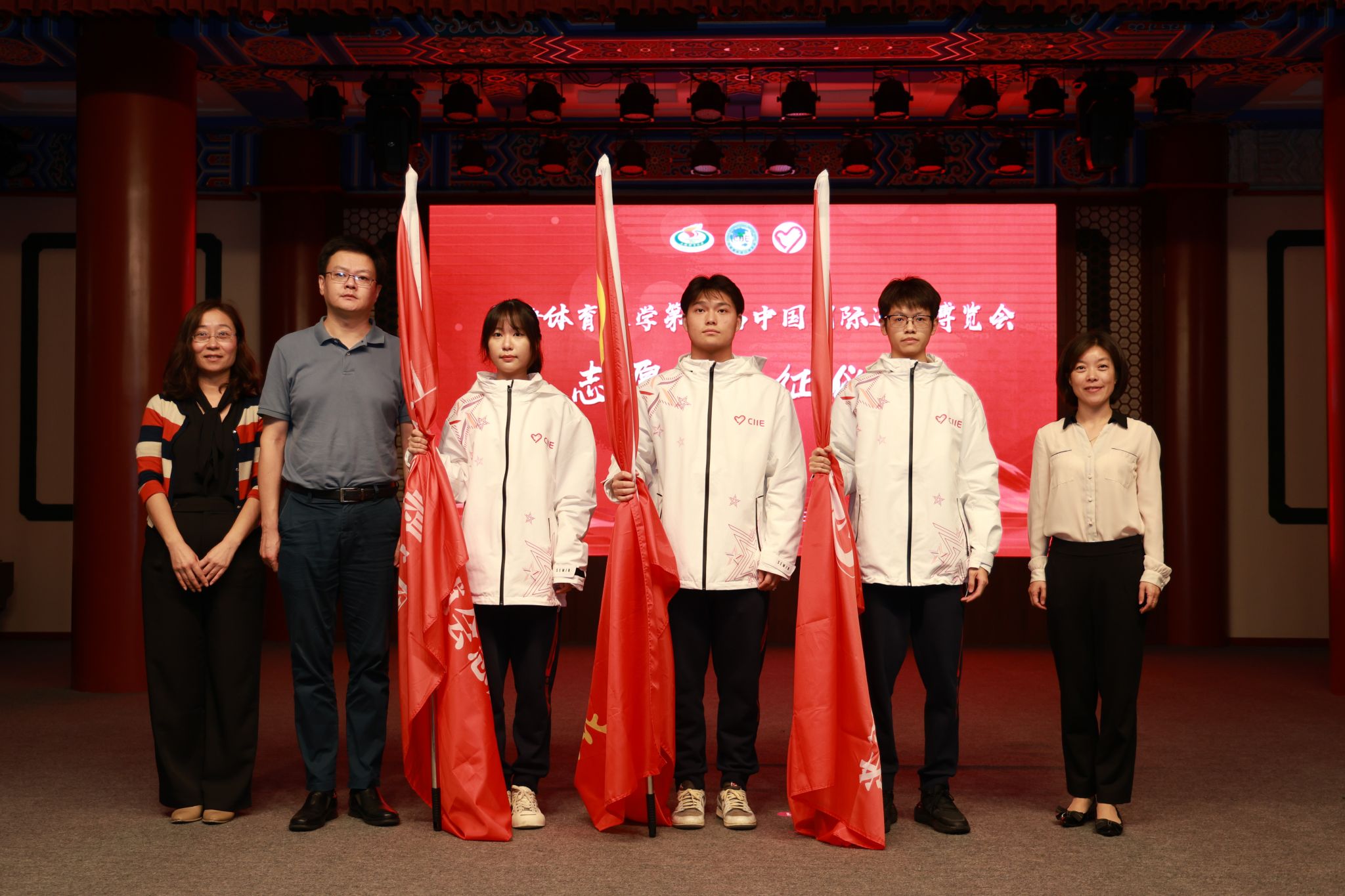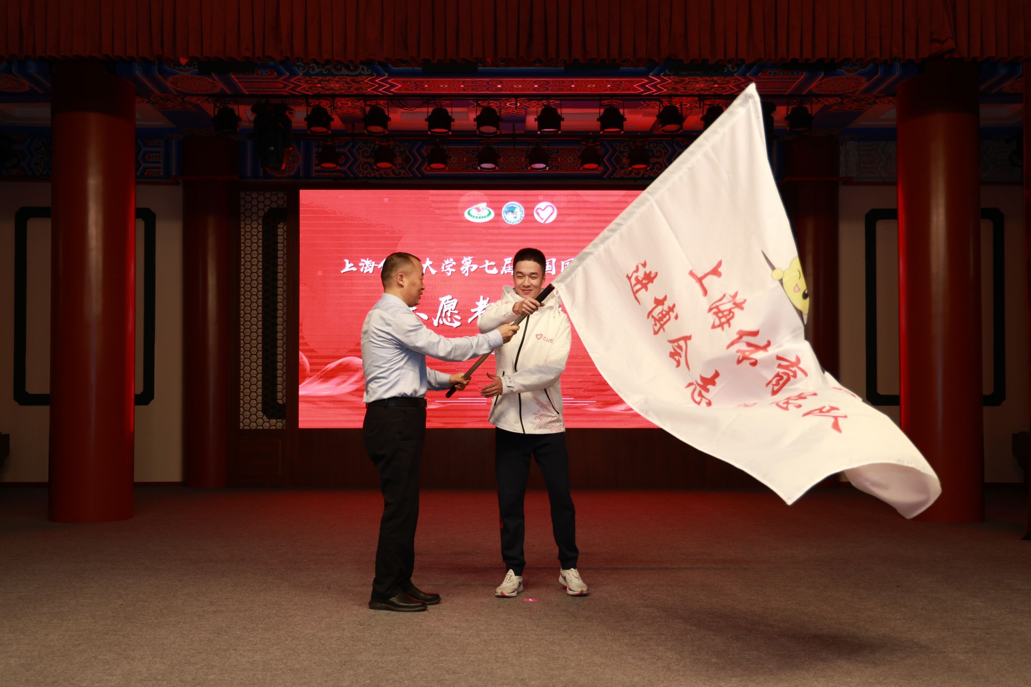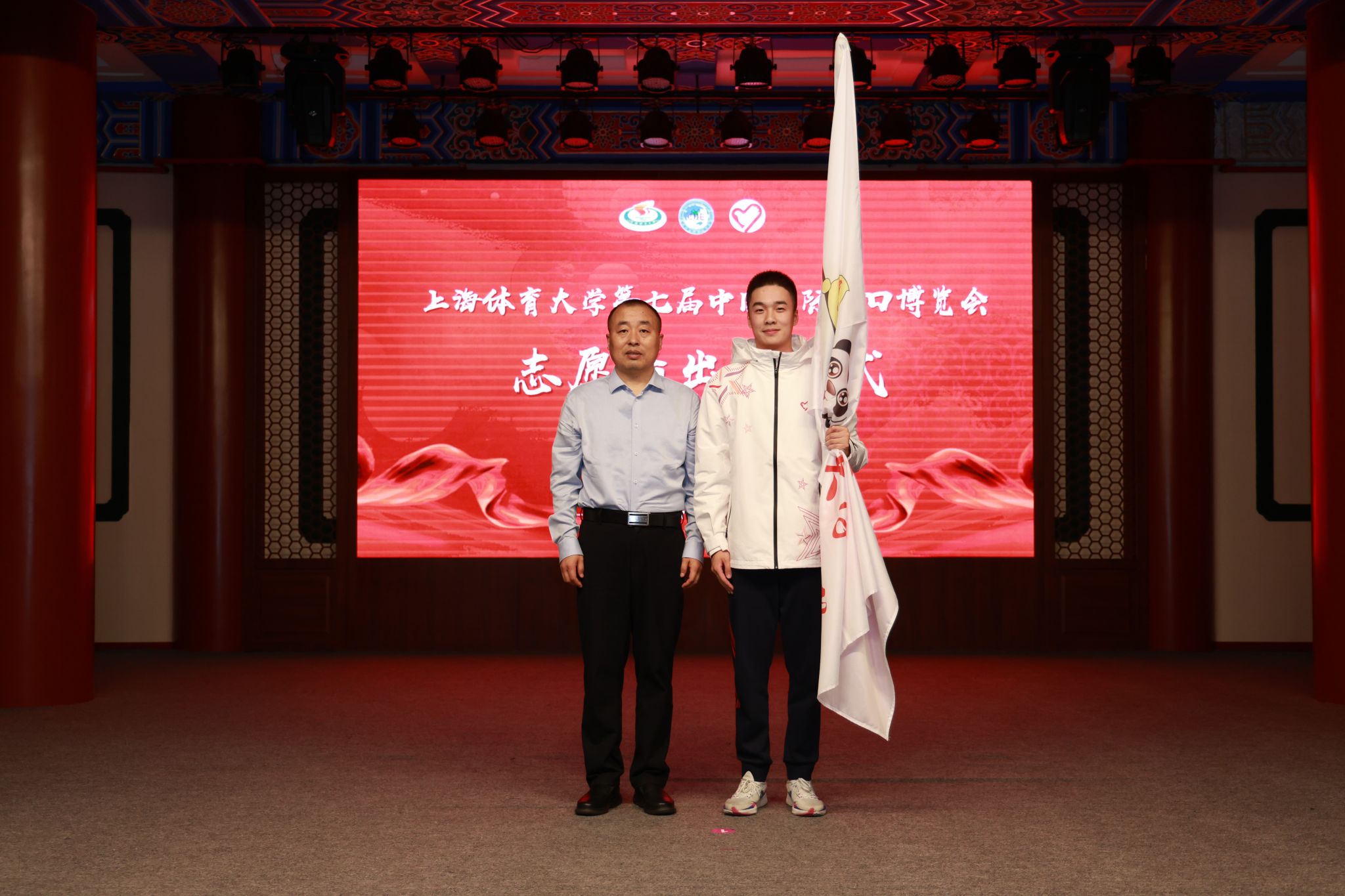 校党委副书记、副校长王继红为伟德源自英国始于1946进博志愿者总队授旗。总旗挥舞,这承载着学校的期望与重托,也激励着每一位志愿者以更加昂扬的斗志和更加扎实的态度投入到进博会的各项服务工作中。