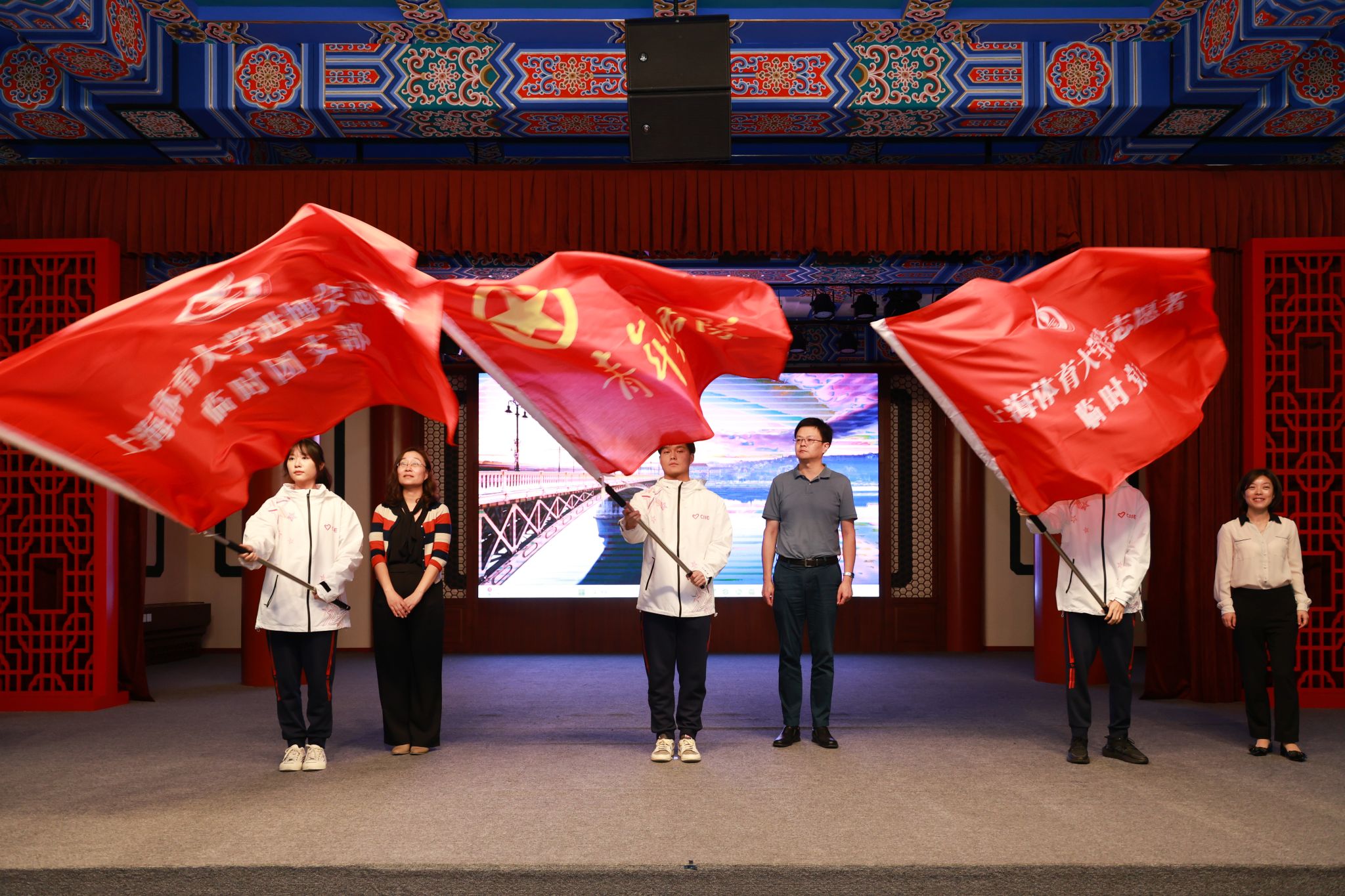 为了能在进博会期间进一步增强党、团组织的凝聚力和战斗力,提升志愿者服务进博的实践技能和业务水平,伟德将组建一个临时党支部和六个进博会志愿者临时团支部。同时,成立伟德源自英国始于1946第七届青春进博专项突击队。党委组织部部长张盛、宣传部部长夏铭娜,学(研)工部部长王丽娜为伟德源自英国始于1946第七届进博会青年突击队、临时党团支部授旗,希望临时党、团组织充分发挥战斗堡垒作用,激励党员志愿者发挥先锋模范作用、团员志愿者发挥突击队作用。