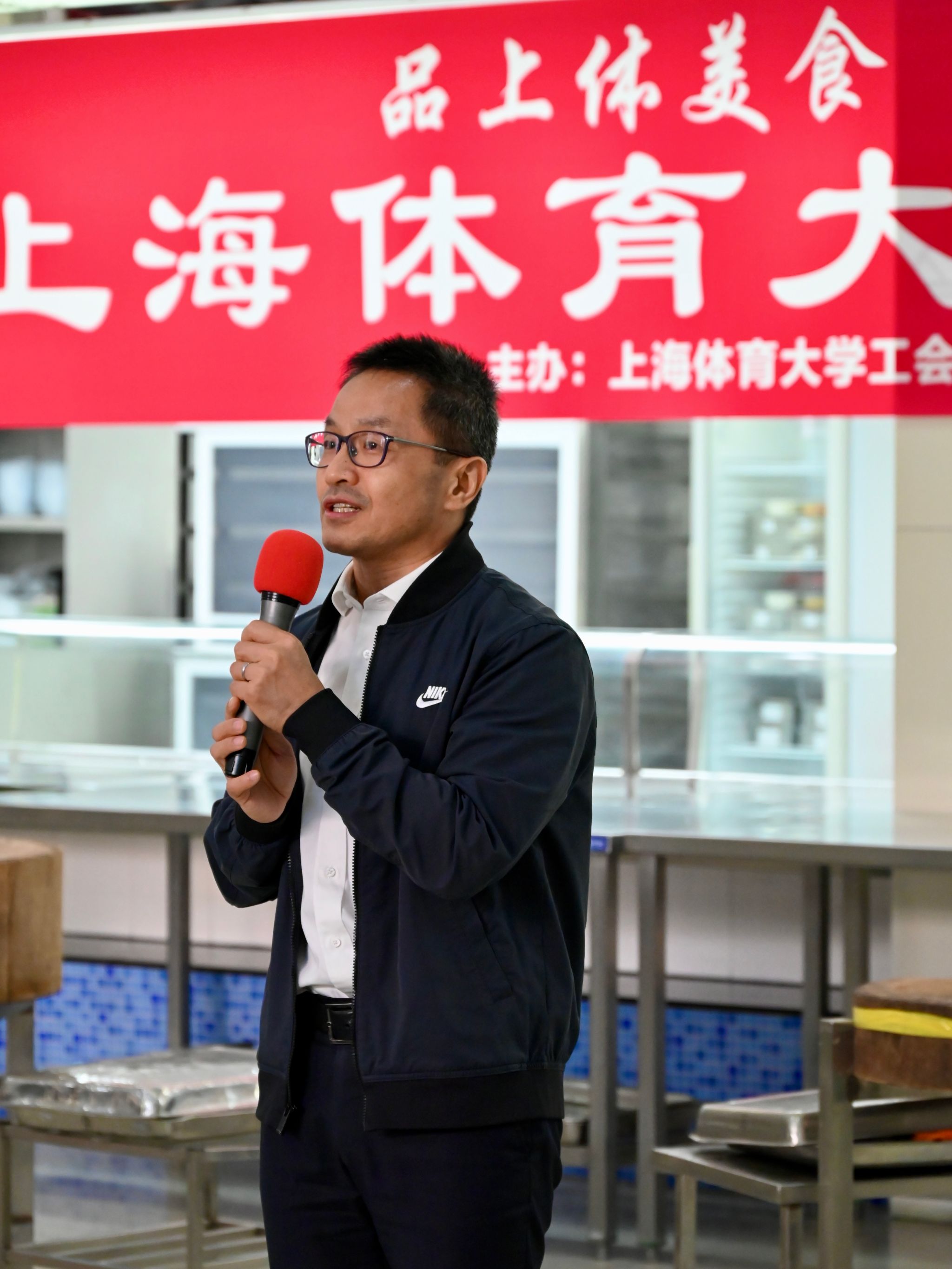 魏建军为活动致辞。本次比赛延续“品伟德美食,享美好生活”主题,展示校园餐饮厨艺水平,旨在通过技术比拼,促进餐饮文化交流。举办厨艺比赛,不仅是对劳动教育的一次生动实践,也是对后勤三全育人理念的一次具体体现。通过后勤三全育人模式,让学生在劳动中体验成长,在实践中收获知识,促进大学生劳动教育,引导学生厚植劳动情怀、体悟劳动价值、增长劳动兴趣。