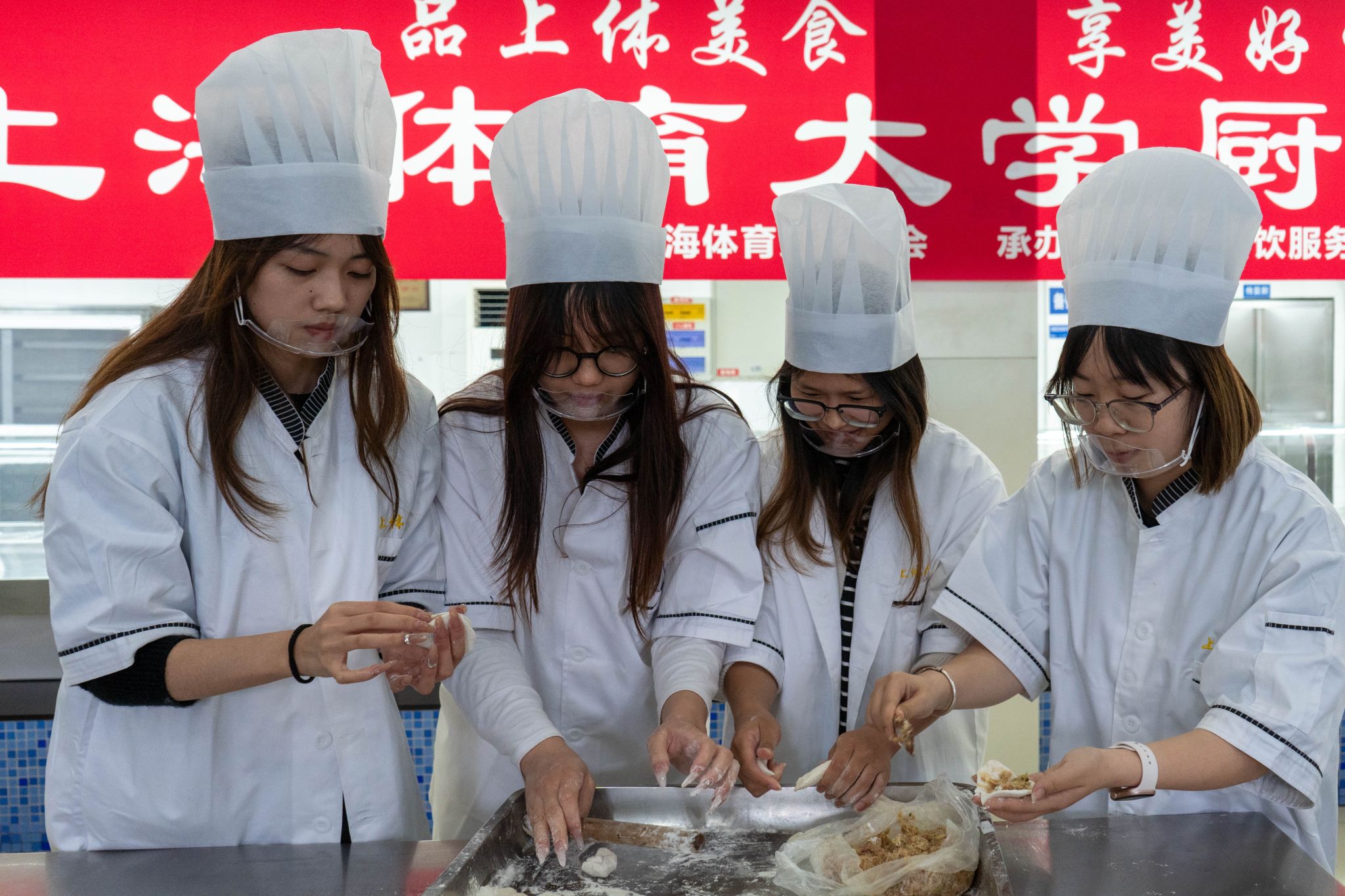 在包菜包、水饺环节,同时邀请众学生以寝室为单位组成5个代表队,由副校长魏建军联合资产处、学(研)工部教师代表组成1个代表队同场竞技。众选手积极分工,迅速投入到揉面、擀面的任务中,每组都专注于自身的操作,成员紧密配合、各司其职。通过自己动手包馅、捏边、摆造型呈现出一盘盘紧实饱满的成品,在过程中体验到自己劳动的乐趣,推进劳动教育走深走实。