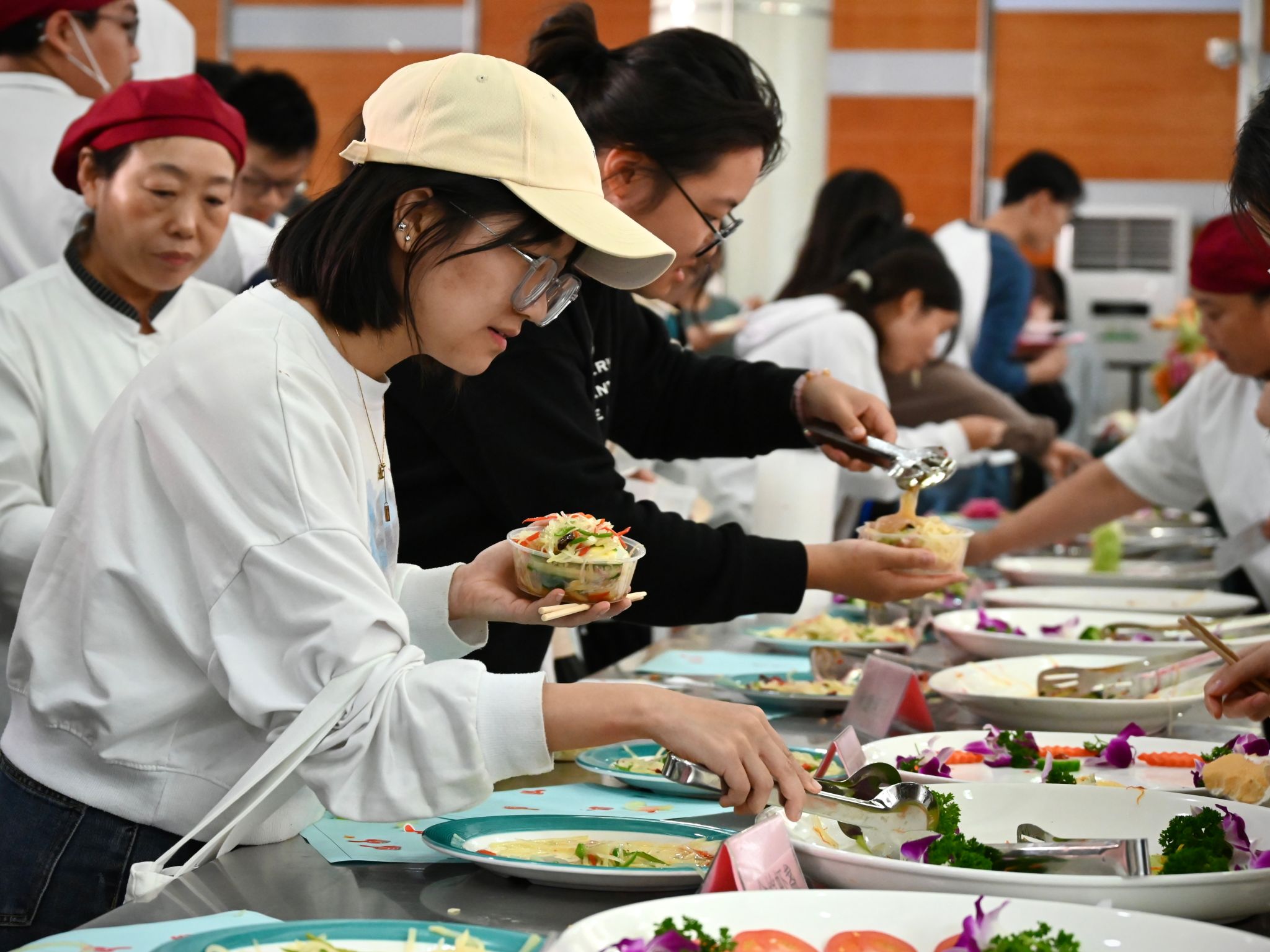 经过激烈的角逐,来自校内的教师、学生大众评委从重量、口味、外观、制作工艺、创新性等方面对五个环节的作品进行现场打分和综合品评,最终评选出每个单项的前三名共23名优胜者,并由党委副书记潘勤现场为一等奖获奖代表颁奖。所有参赛的自选菜肴作品全部呈现在活动现场供应区域,学生、教职工共享劳动成果。