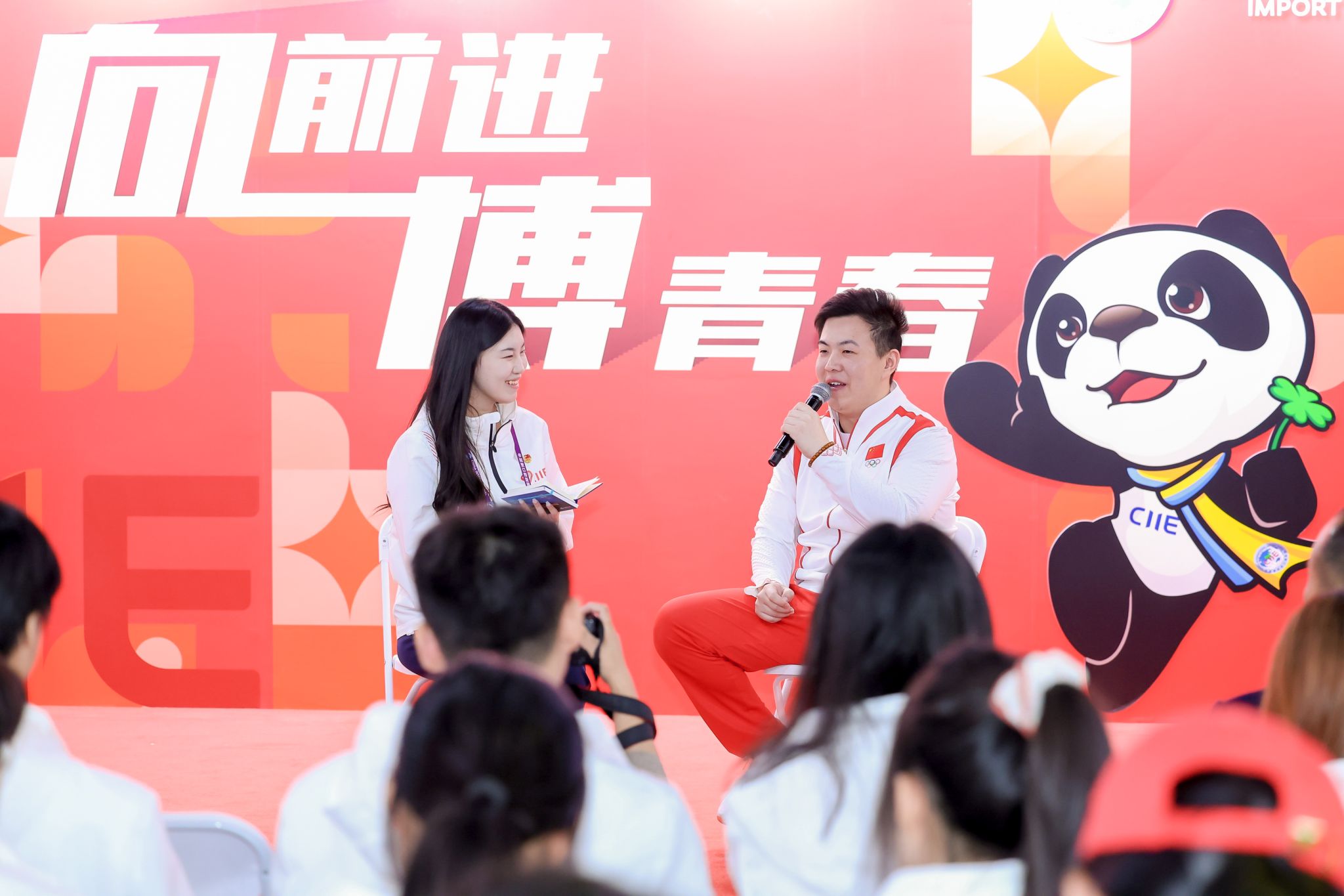 上午9点半,第七进博会志愿者之家主题活动之“奥运五环”到“进博四叶草”在小叶子之家“梦想舞台”开展。毛丽娟校长与伟德在校生、中国男子射击运动员、2024年巴黎奥运会男子25米手枪速射季军王鑫杰共同为小叶子们上了一堂特殊的“微党课”。
