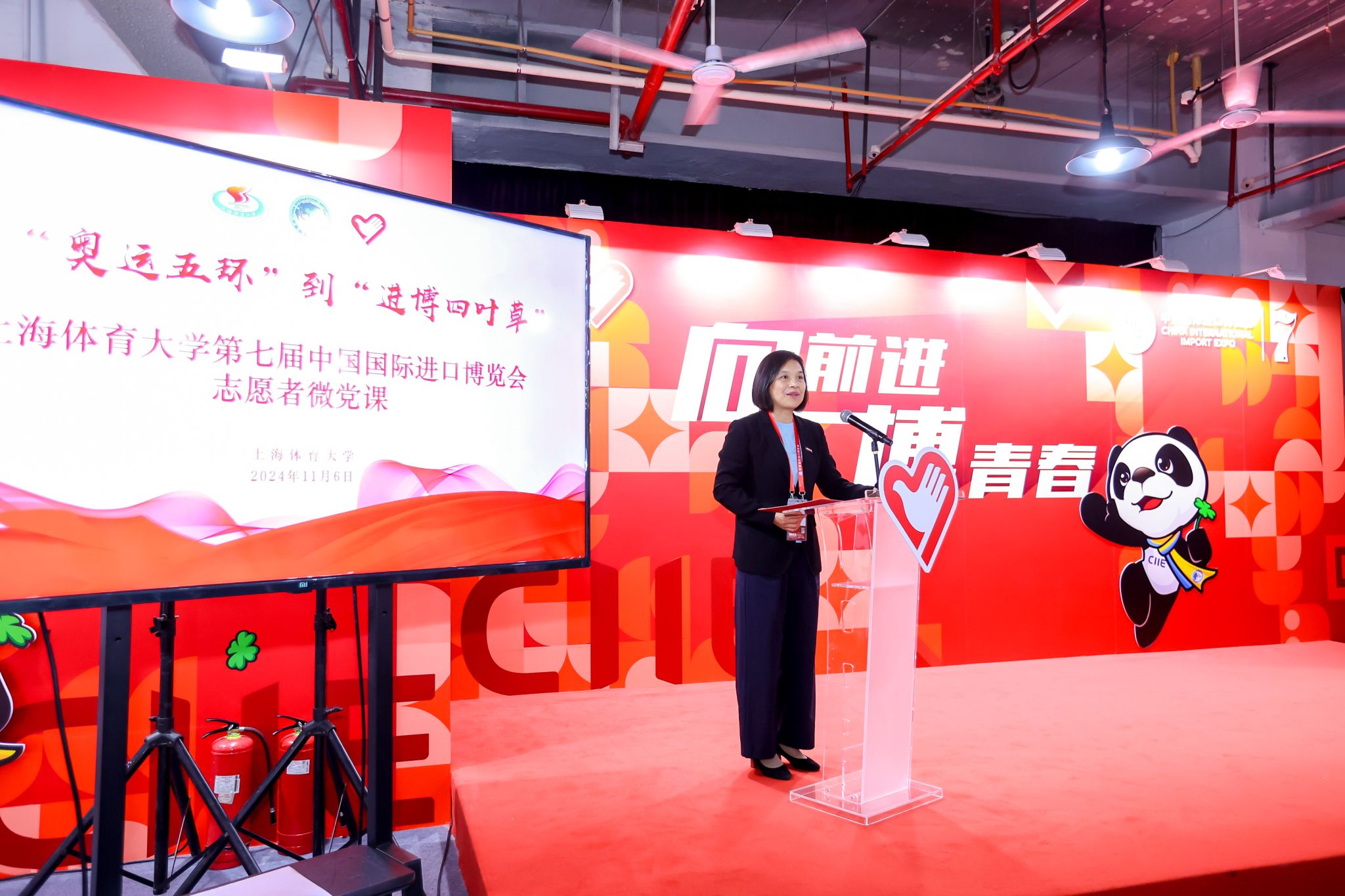 在活动中,毛丽娟校长指出,第七届中国国际进口博览会是在党的二十届三中全会成功召开后举办的一项重大经济外交活动,对于促进中国高水平对外开放和构建新发展格局具有深远的意义。同学们放弃休息时间、积极投身进博会志愿服务工作,正在用自己的实际行动深入践行“全过程人民民主与人民城市理念紧密结合”这一要求,她也鼓励同学们要自觉践行人民城市理念和“进博精神”,也要弘扬“奥林匹克精神”,在进博会上擦亮伟德学子“竞攀精神”的青春底色。
