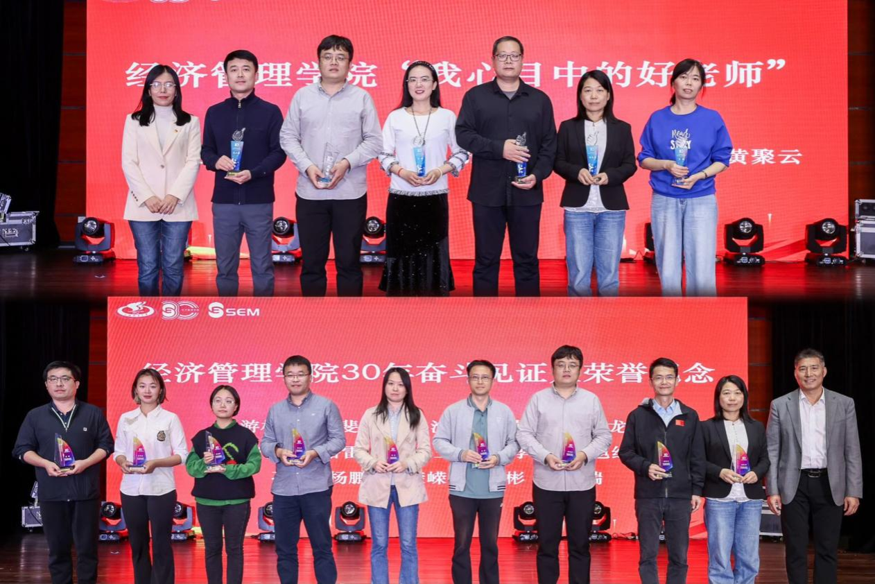 春风化雨,师道永存。本次院庆大会表彰历年获得“我心目中的好老师”荣誉称号的教师。向在经济管理学院工作第5年、第10年、第15年、第20年、25年以上的教职工颁发30年“奋斗见证人”荣誉纪念,再次回顾30年来经管学院的风雨兼程,见证30年的建设发展。