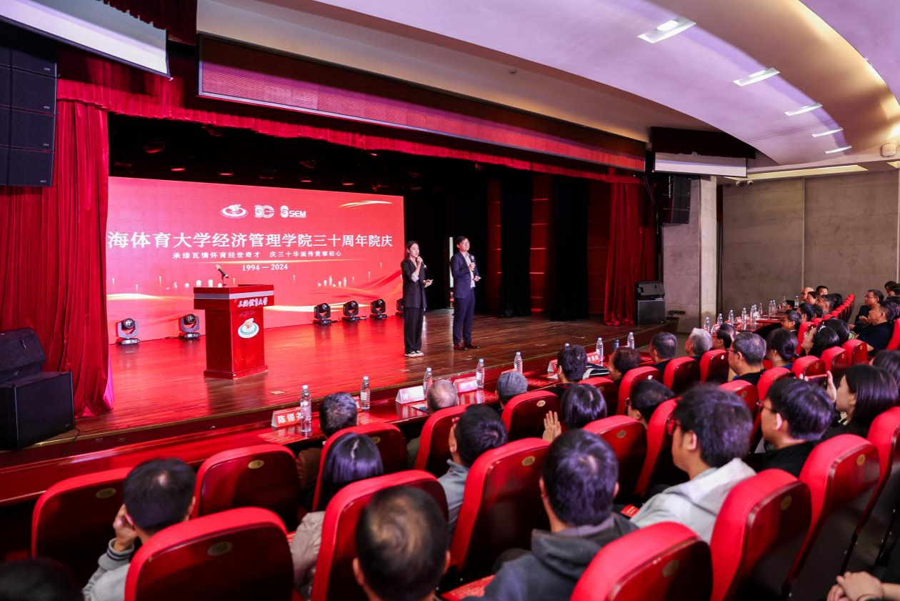 经济管理学院党委副书记、院长李海在致辞中,深情回顾了学院的历史和成就,详细介绍了未来的发展计划。他指出,从最初的专业设立到如今构建具有中国特色的体育人才培养体系,每一步都凝聚着经管人的智慧和汗水。学院今天的进步和成绩离不开一代代经管人的辛勤努力和社会各界的大力支持。他强调,经管学院将聚焦国家重大需求,落实立德树人根本任务,接续前辈们开创的辉煌事业,继续担负起国家战略、国家使命,深入新的体育产业实践,为建设中国特色、世界一流的体育商学院而努力奋斗。