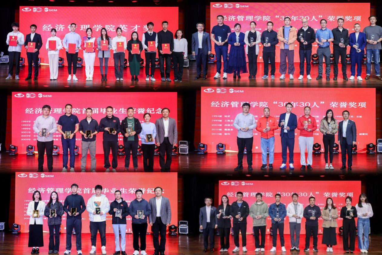 桃李成林,硕果盈枝。本次院庆大会设立经济管理学院英才奖,表彰在专业学习、科学研究、创新创业、学科竞赛等方面取得丰硕成果的在校生;设立“30年30人”荣誉奖项,展示学院30年来各届各专业毕业生风采,激发更多人才对体育产业的热情与投入;设立体育管理专业本科生、体育赛事运作硕士专业、体育管理学博士专业等12类“首届毕业生”荣誉纪念,以见证历史,铭记初心。
