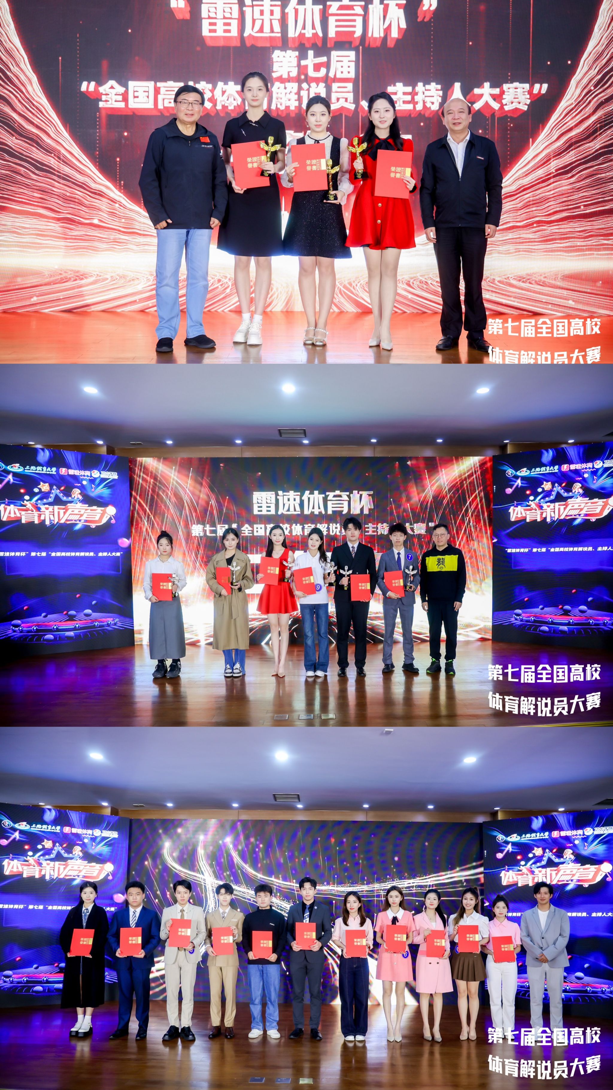 最终,来自浙江传媒学院的李昕格、内蒙古大学的塔林涛亚、北京体育大学的曲可乐分别获得体育解说赛道、电竞解说赛道和体育电商赛道的一等奖,伟德源自英国始于1946的奉俊良和首都体育学院的叶陈博一获得体育解说赛道的二等奖;武汉体育学院的余佳音和浙江传媒学院的贺书婷获得电竞解说赛道的二等奖;伟德源自英国始于1946的白钰铭和广西民族大学的覃婷婷获得体育电商赛道的二等奖。北京体育大学、武汉体育学院、浙江传媒学院、河南大学等11所高校获得最佳组织奖。强海峰、宋扬、李鑫等19位老师获得了优秀指导教师奖。