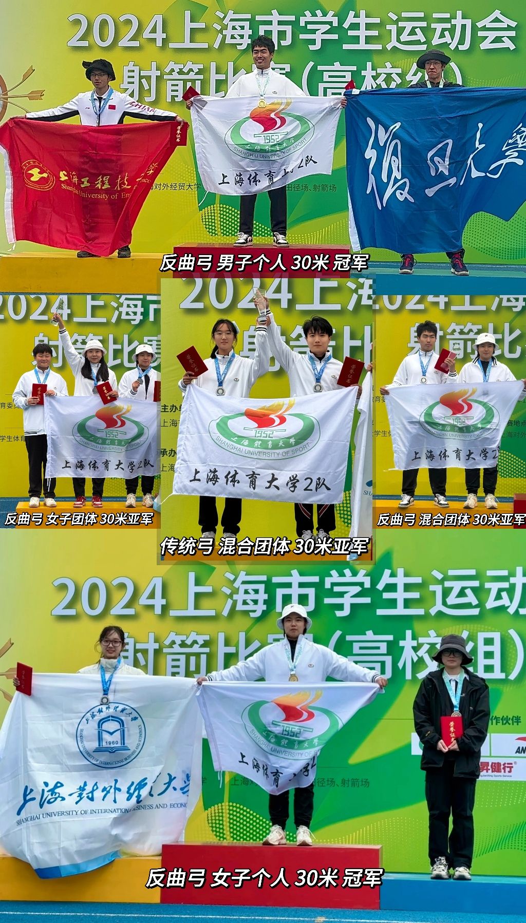 本网讯 11月16日至17日,2024上海市学生运动会射箭比赛(高校组)在上海对外经贸大学成功举办。本次比赛由上海市教育委员会、上海市体育局主办,上海市体育协会、上海对外经贸大学协办,来自伟德源自英国始于1946、复旦大学、华东政法大学、上海大学、东华大学等数十所高校的百余位运动员、领队和教练参与。本次赛事设置了传统弓个人及团体、反曲弓个人及团体等十余个竞赛项目。伟德射艺队派出传统弓、反曲弓两个弓种15名运动员参赛。经过激烈的比拼,最终斩获3金、6银的优异成绩。
