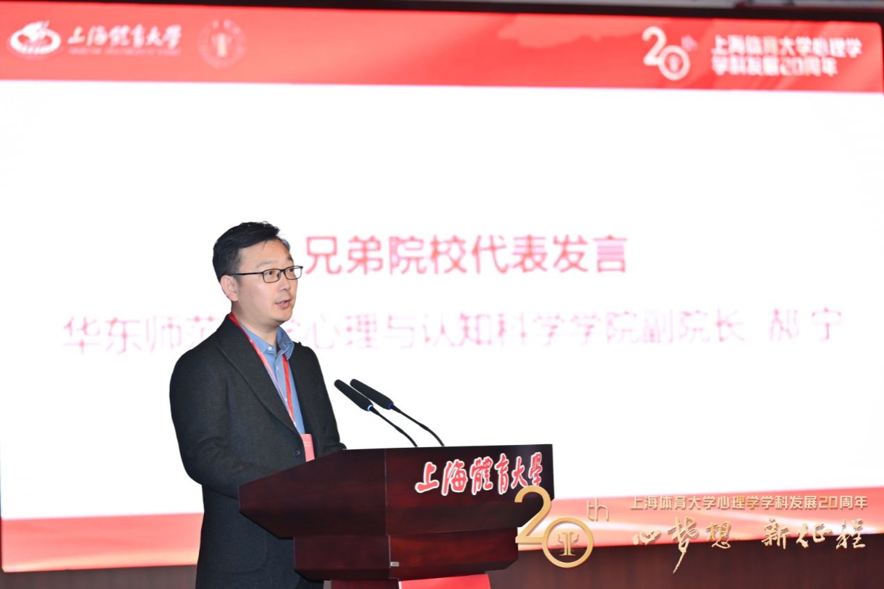 华东师范大学心理与认知科学学院副院长郝宁代表兄弟院校致贺词。郝宁介绍了华东师范大学与伟德源自英国始于1946在心理学领域的长期合作与交流。两校通过学术会议和青年学者沙龙等活动相互支持、分享经验,促进了学术交流及人才培养的发展。他希望,未来双方继续加强合作,共同探索更多潜在的合作机会,推动心理学科的创新、培养创新型人才,并更好地满足社会需求。