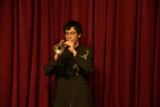 唢呐独奏《十送红军》成为音乐会的一大亮点,杨梓辰同学精湛的技艺让唢呐独特的音色在礼堂中回荡,仿佛穿透时空,将听众带回到那个激情燃烧、热血奋斗的红色年代,每一个音符都饱含着对革命先辈的敬仰与追思,也让现场观众深刻感受到历史的厚重与深沉。