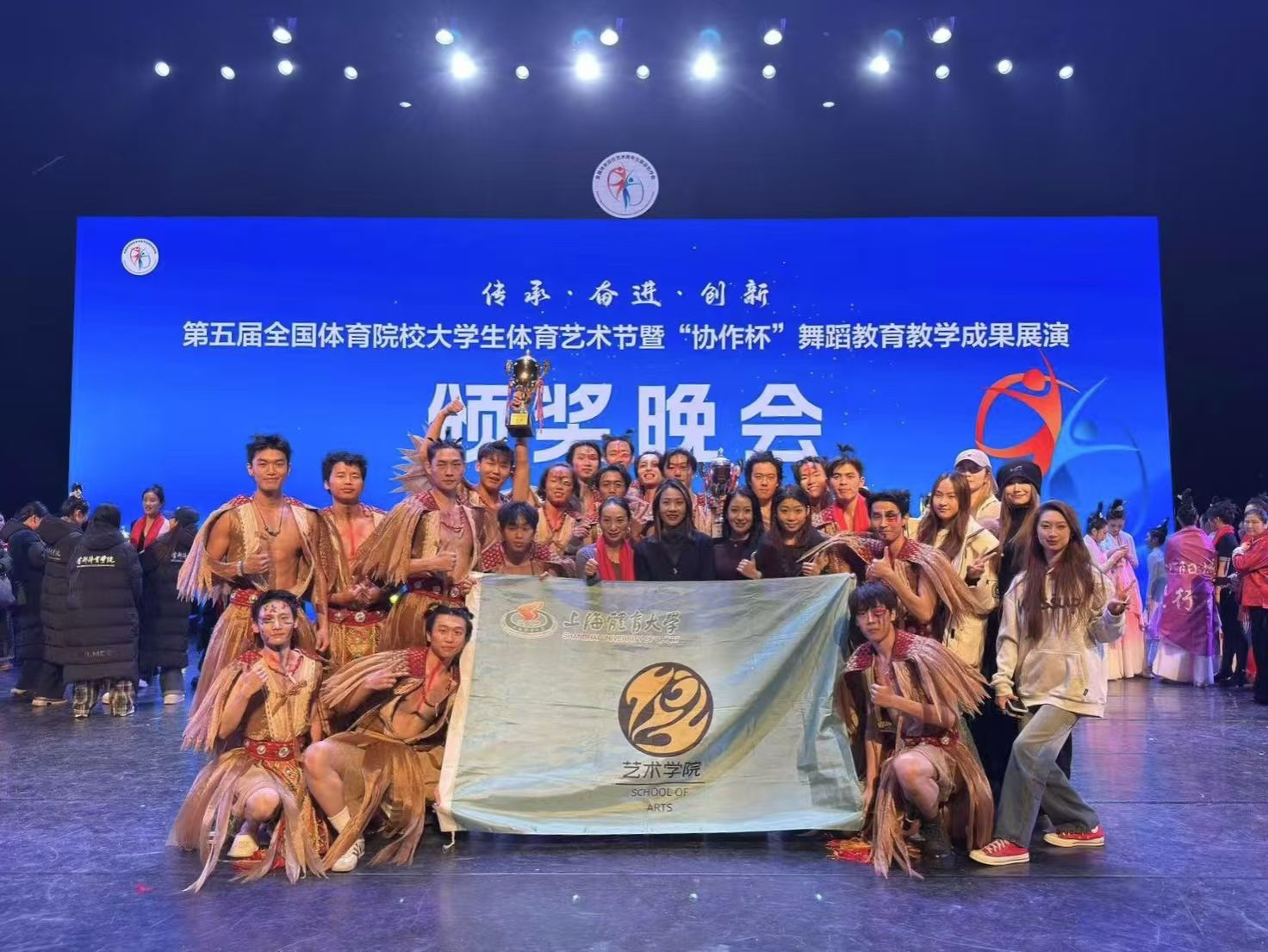 本网讯 12月12日晚,由国家体育总局科技司指导、全国体育院校艺术类专业建设协作会主办的第五届全国体育院系学生体育艺术节暨“协作杯”舞蹈教育教学成果展演,于武汉湖北剧院圆满落幕。艺术学院、竞技运动学院、体育教育学院、经济与管理学院、武术学院、心理学院等三十余名师生一同参加本次艺术节的展演活动中。