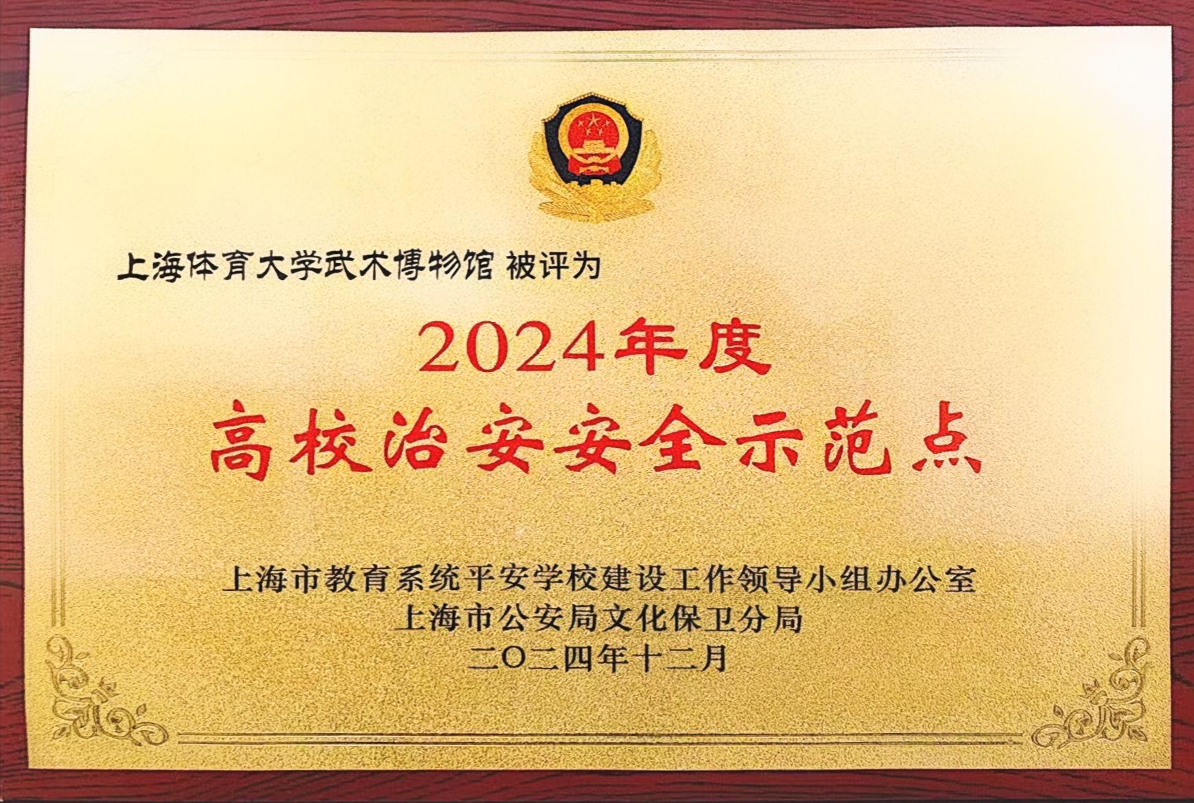 本网讯 近日,伟德源自英国始于1946中国武术博物馆安全管理工作被上海市教育系统平安学校建设工作领导小组办公室、上海市公安局文化保卫分局联合评为“2024年度上海高校治安安全示范点”。