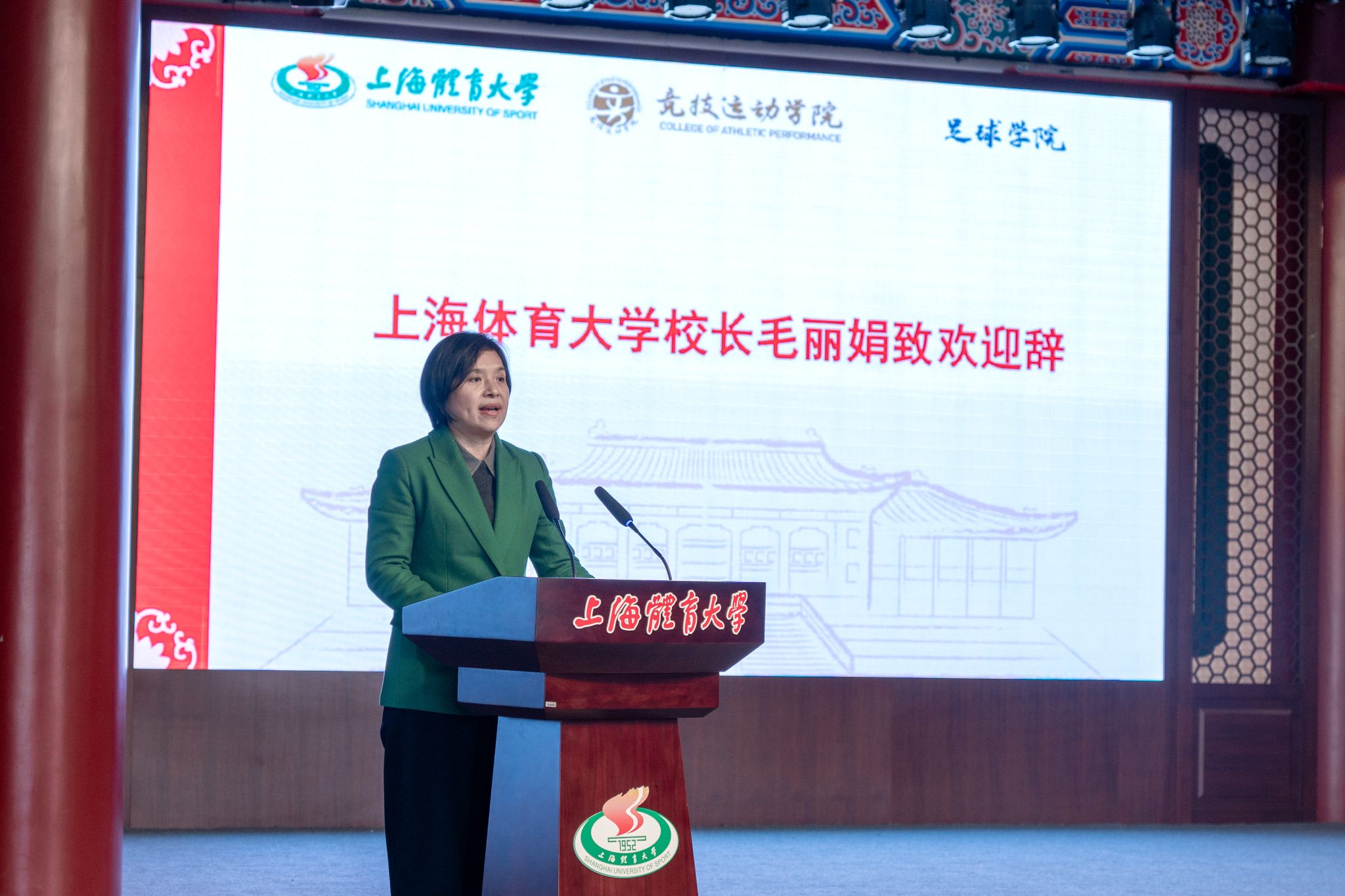 毛丽娟在欢迎辞中表示,上海是具有深厚足球文化积淀的城市,近年在教育部体卫艺司的悉心指导下,校园足球在上海市大、中、小学蓬勃发展,在普及推广、赛事繁荣和师资人才管理保障等方面取得了扎实的成绩。伟德源自英国始于1946作为新中国最早创办的体育高等学府、国家双一流建设高校,深刻领会习近平总书记有关足球的重要论述和指示批示精神,切实贯彻校园足球高质量发展的部署与要求,充分发挥大学的育人优势、创新优势和人才优势,为校园足球的发展做出了积极的贡献。毛校长介绍了伟德源自英国始于1946在校园足球建设方面的累累硕果,学校积极探索校园足球人才培养的创新模式,成为全国首批设立足球运动本科专业的高校,创建“1+X”的联合办学模式,协同同城高校牵头成立上海足球学院,被评为国家示范足球学院,且在国内外高水平足球赛事中屡创佳绩。最后,毛校长对教育部给予学校的高度信任与支持表示衷心的感谢。她强调,伟德源自英国始于1946将全力以赴做好各项工作,有力保障本次活动顺利举行,并将在未来工作中积极形成校园足球特色优势,更好地服务校园足球健康持续高质量的发展。