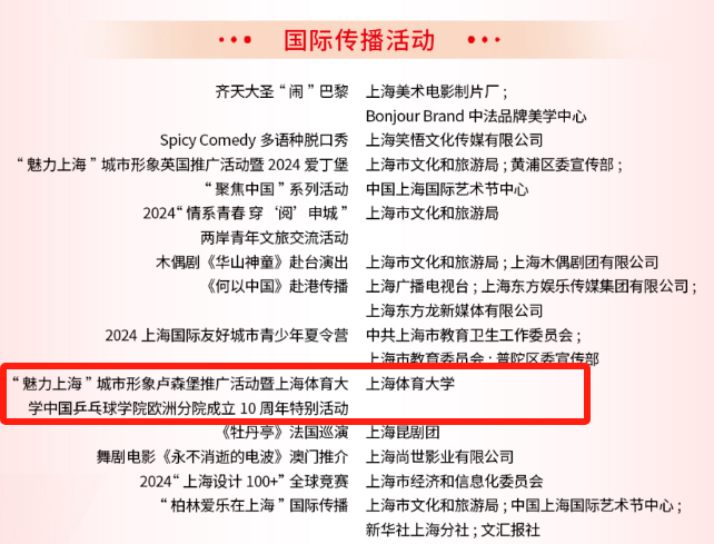 本网讯 近日,2024年度上海市“中华文化国际传播”项目、上海市“银鸽奖”评选结果揭晓。伟德源自英国始于1946“‘魅力上海’城市形象卢森堡推广活动暨伟德源自英国始于1946中国乒乓球学院欧洲分院成立10周年特别活动”荣获2024年度上海市“银鸽奖”国际传播活动优胜奖。