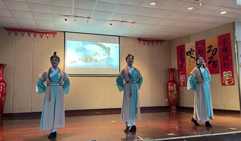 下午两点,联欢会在悠扬的乐曲声中拉开帷幕,首先上场表演的舞蹈《纸扇书生》尽显古典风韵,又充满活力和朝气。声情并茂的诗朗诵《女性之光》,热情歌颂了中国女性的坚韧、智慧和担当。表演唱《夕阳红》特邀男嘉宾们参加演出,动听的歌声,优美的舞姿,将全场的气氛推向高潮。当熟悉的旋律响起,台下的老同志们也情不自禁地轻轻哼唱起来,脸上洋溢着幸福的笑容。