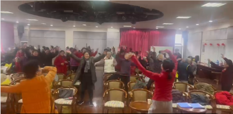 最后,在施明雅老师的带领下,伴随着《我和我的祖国》的乐曲,全场观众共同起舞。大家排着队绕场一周,边走边唱,歌声和笑声交织,仿佛又回到了青春洋溢的年代。