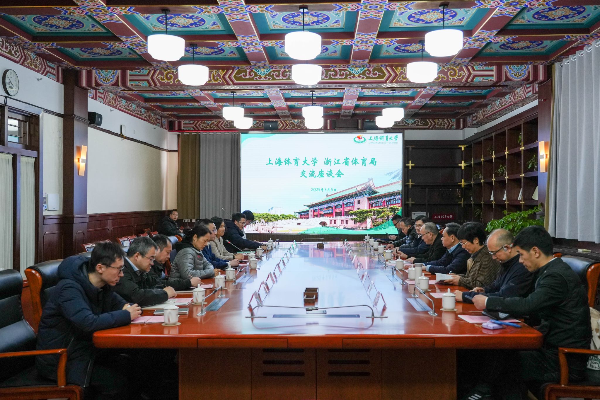 毛丽娟向浙江省体育局一行到访致以热烈欢迎,并介绍了学校在学科建设、师资队伍、科学研究和特色办学等方面的发展情况。她表示,希望通过此次交流,双方能够进一步加深友谊、密切联系,在加快建设体育强国的新征程上同向同行、携手并进。