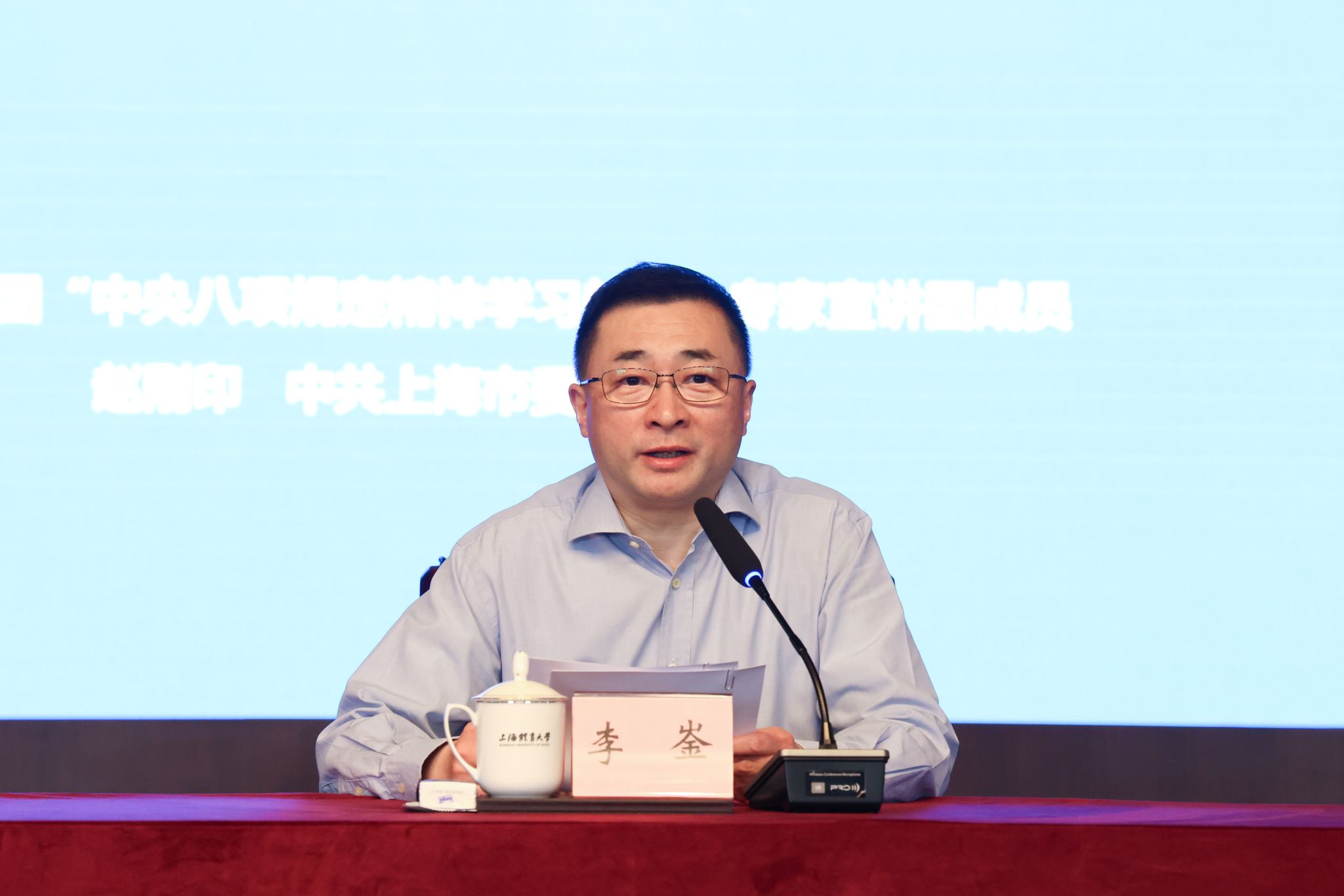 本网讯 4月11日下午,学校党委在绿瓦大礼堂举行理论学习中心组(扩大)学习会,专题学习习近平总书记关于加强党的作风建设的重要论述和中央八项规定精神。本次学习会邀请了上海市委党校党的建设教研部主任、上海市毛泽东思想研究会副会长、上海市党的建设研究会常务理事赵刚印教授作辅导报告。党委理论学习中心组成员、全体中层领导人员,各级党组织组织、宣传、纪检委员,组织员(宣传员、统战员),基层党支部书记参加学习。党委书记李崟主持学习会。