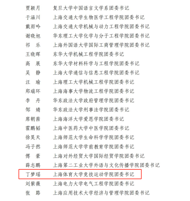 本网讯 为深入学习贯彻习近平总书记关于青年工作的重要思想,持续深化团中央“三力一度两保证”工作格局,全面推进团的基层组织建设,强化典型示范引领作用,推动新时代基层团建高质量创新发展,共青团上海市委开展了2024年度基层团组织典型选树专项工作。对标“政治站位高、组织基础牢、联系服务实、作用发挥强、规范建设好”的选树标准,在校团委的推荐下,竞技运动学院团委入选2024年度“上海市基层团组织典型选树”专项工作团委选树名单,竞技运动学院团委书记丁梦瑶入选2024年度“上海市基层团组织典型选树”专项工作个人选树名单。