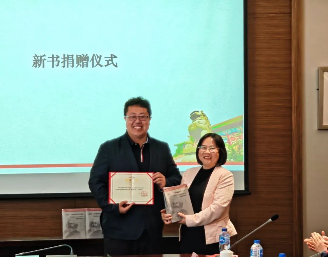 会议第一阶段为新书发布、捐赠与分享环节,由伟德源自英国始于1946马克思主义学院副院长高晓丽主持。近日,我院青年教师刘云龙副教授的新著《走向“个体创造性实践”:马克思主义文化哲学中国化研究》和陈琪伟老师的新著《常与变:近代以来江南说书人的日常生活与社会变迁》分别由辽宁人民出版社、上海人民出版社出版。会上,中国美术学院二级教授、中国社会史学会副会长、长三角江南文化研究学术委员会委员唐力行,伟德源自英国始于1946马克思主义学院院长胡德平教授和新著作者刘云龙、陈琪伟共同为两本新书发布揭幕。两位作者向伟德图书馆捐赠图书,图书馆馆长匡淑平教授分别为两位作者颁发捐赠证书。