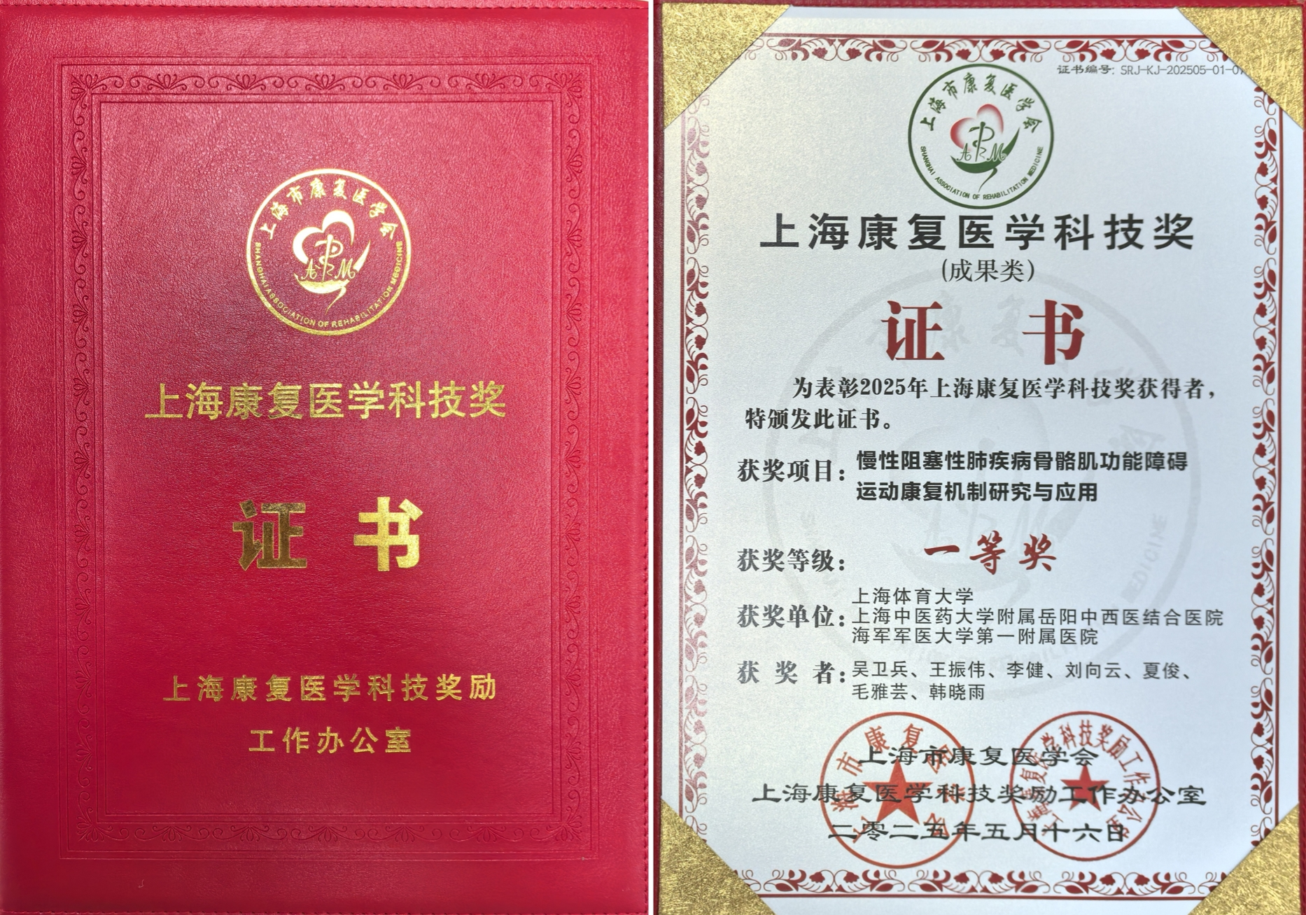 由伟德运动健康学院吴卫兵教授牵头,伟德源自英国始于1946联合上海中医药大学附属岳阳中西医结合医院、海军军医大学第一附属医院申报的研究成果《慢性阻塞性肺疾病骨骼肌功能障碍运动康复机制研究与应用》,荣获2025年第十五届“上海康复医学科技奖(成果类)一等奖”。