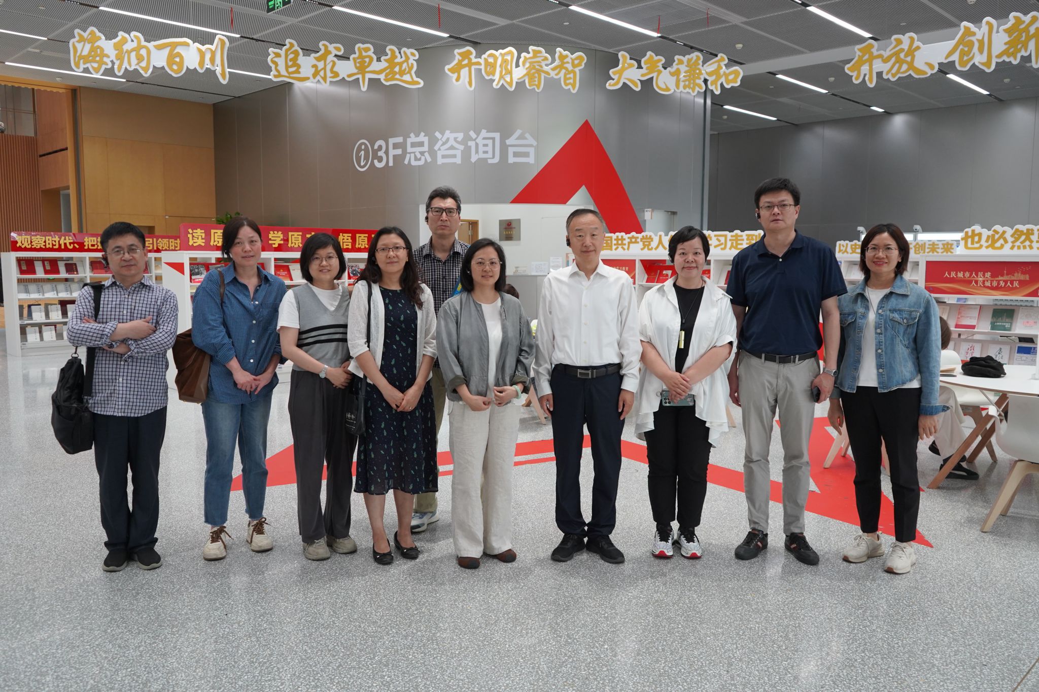 在上海图书馆东馆参观过程中,与会人员沉浸式体验了智能检索、数字文献展示、沉浸式阅读空间等创新服务场景。馆内“以科技赋能文化传承”的设计理念,为大家带来关于教育与科技融合的直观启发。潘勤副书记在参观中指出,图书馆作为知识传播的重要阵地,其数字化转型经验对学校推进智慧校园建设、深化教育教学改革具有借鉴意义,希望各民主党派成员结合参观感悟,为学校事业发展积极建言献策。