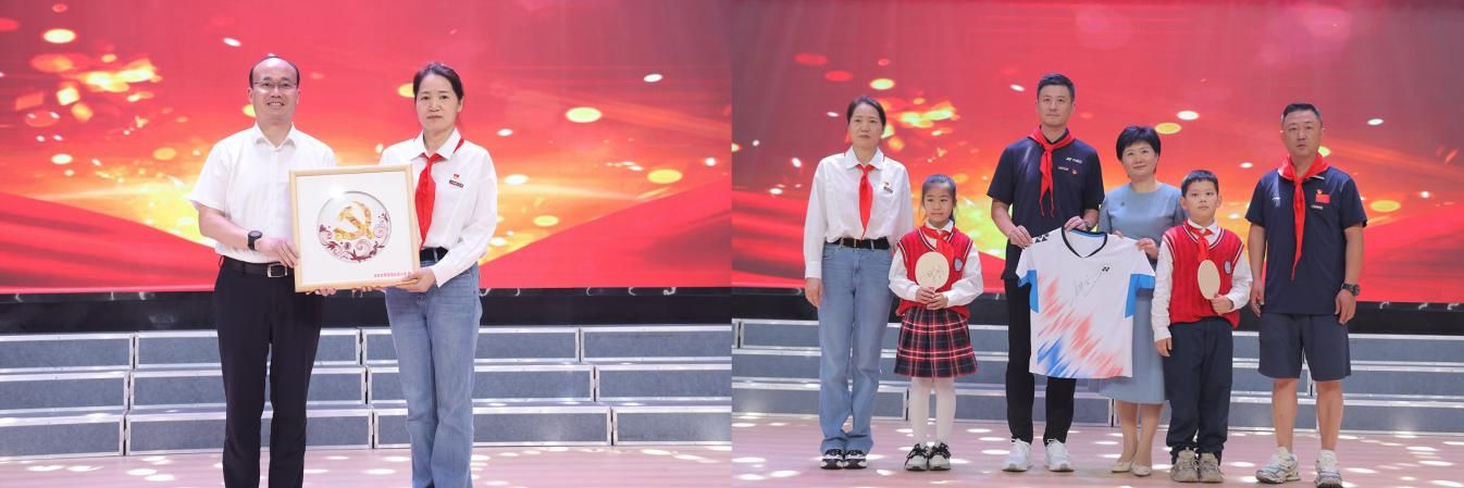 奥运冠军阎森、蔡赟和小学生们亲切互动,同时,结合自身经历讲述奋斗故事,让领奖台的高度转化为青少年学生家国情怀的深度,为体育强国建设凝聚青春力量。两位奥运冠军的展示赢得在场师生的阵阵喝彩,同学们争先模仿冠军的挥拍动作,场馆内多次响起雷鸣般的掌声。