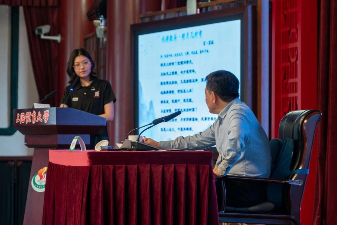 讲座中,姚喜双教授以范仲淹《岳阳楼记》、苏轼《水调歌头·明月几时有》、杜甫《春夜喜雨》三篇经典作品为例,凭借深厚的文学素养、丰富的诵读经验和充沛的教学热情,围绕古典诗文的诵读技巧与艺术表达,与现场学生进行了深入交流。讲解了如何把握文本重心、准确传达意义并融入情感,使诵读更加生动自然、感染力更强。在姚教授的带领下,现场的同学们逐句拆解文本,在字里行间搭建起了一座声音的立体迷宫。
