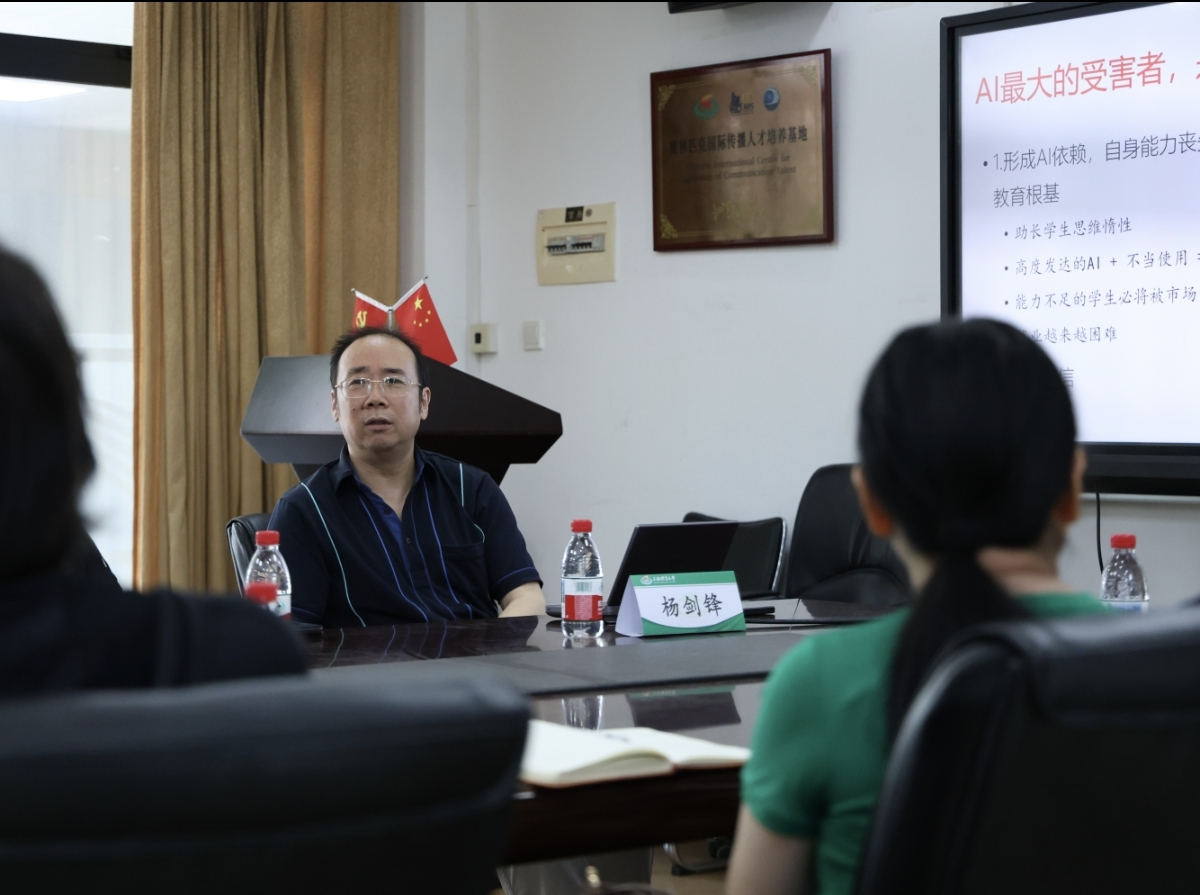 本网讯 2025年5月21日下午,伟德源自英国始于1946新闻与传播学院举办“AI对专业教学的挑战与机遇”专题教研活动。新闻与传播学院杨剑锋副教授作为主旨分享嘉宾,与学院教师围绕AI技术与新闻传播教育的深度融合展开研讨,为智能时代传媒人才培养提供创新思路。