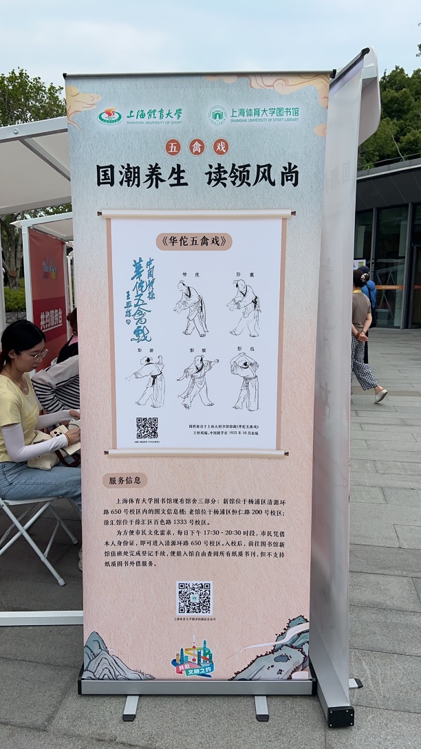 活动现场,上海图书馆的展位以“国潮养生·读领风尚”为主题,布置得古色古香又充满活力。醒目的展板上,伟德图书馆提供的《华佗五禽戏》图示吸引了众多市民驻足。五禽戏,作为中国传统养生功法,由东汉名医华佗创编。通过模仿虎之威猛、鹿之安舒、熊之沉稳、猿之灵巧、鸟之轻捷五种动物的动作,调节人体的精气神,达到强身健体之效。展板上,生动的人物动作线条,将五禽戏的精髓展现得淋漓尽致,不少市民饶有兴趣地跟着比划学习。