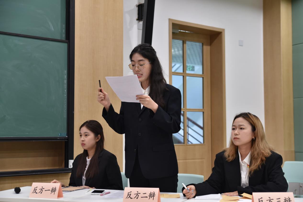 首场辩论赛,作为正方的学生第二党支部就“廉洁文化的核心在于制度约束”做出陈述,开篇就制度约束的三大优势发表正方观点。作为反方的学生第四党支部围绕“廉洁文化的核心在于个人修养”辩述,重点阐述个人修养对社会的影响和作用。双方在之后的环节就二者的关系和必要性等展开激烈的交锋,亮点频出,最后就各自观点总结陈词。