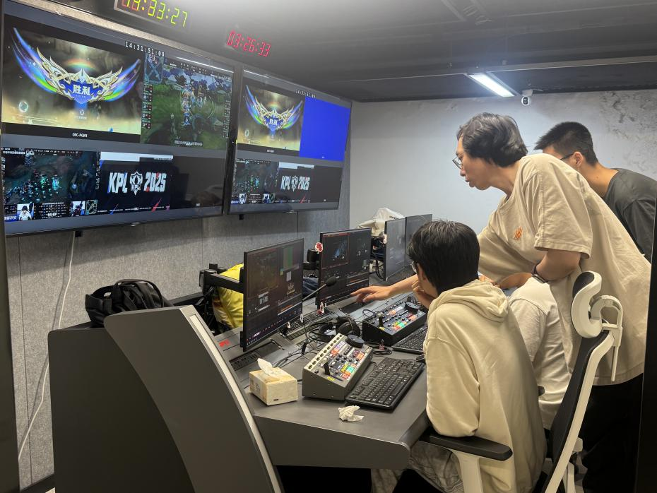 在国家会展中心主赛场,学生季钧天在OB岗位完成DOTA2赛事数据追踪系统实操。“通过英雄电竞的AI摄像机位预测系统,我们实现了12路信号同步处理与智能切换。”他表示,这种将虚拟现实技术与传统导播相结合的训练,让课本中的媒体融合理论转化为可量化的技术指标。