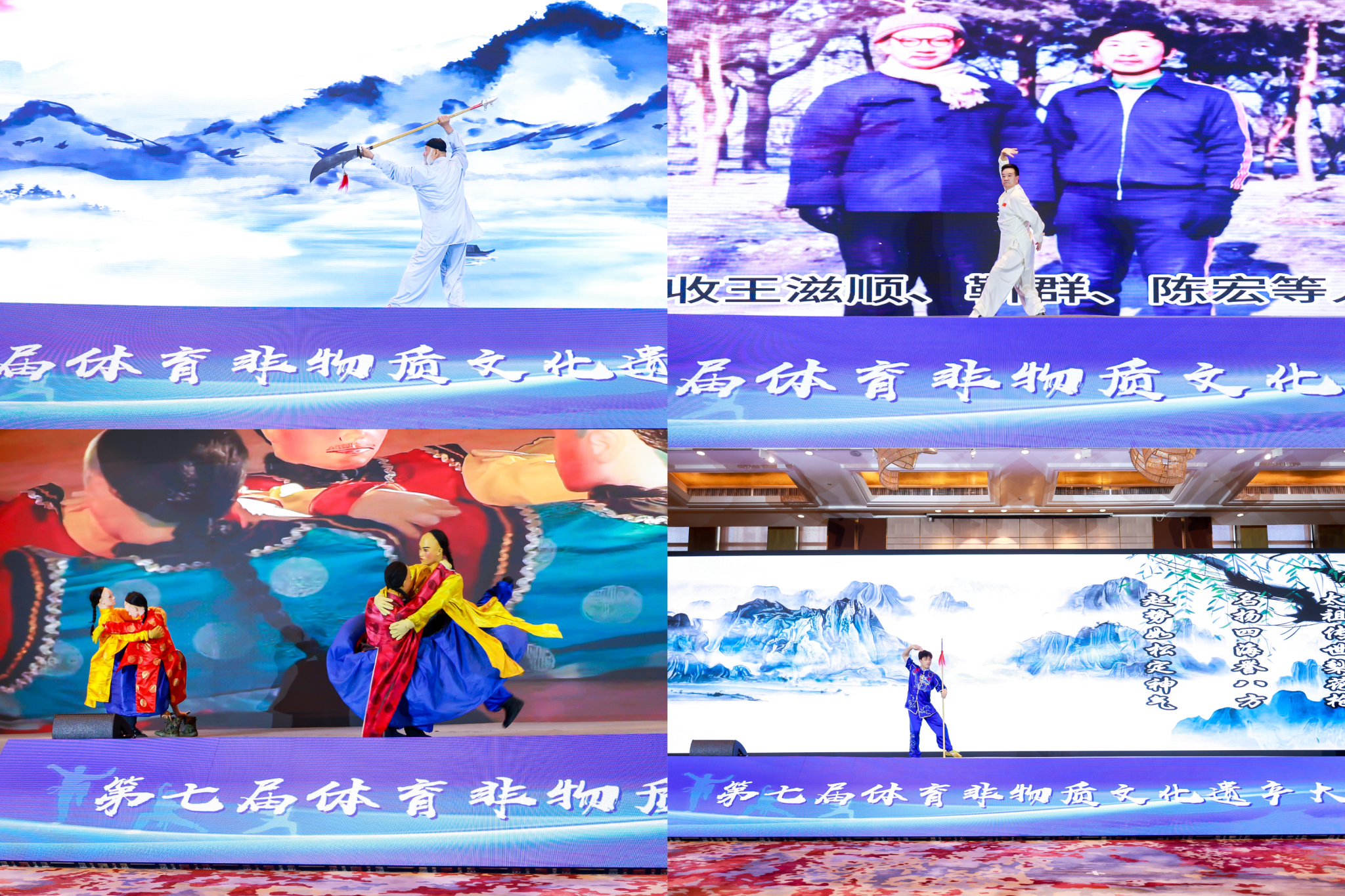 开幕式结束后举行体育非遗项目展演,包括龙形拳械、孙式太极拳、太祖拳械等代表性拳种,以及满族二贵摔跤、九宫八卦转掌、戳脚、八极拳械、六合螳螂拳等国家级、省级非遗代表性项目。最后,以传统冰雪体育影片为展演画上圆满句号。体育非遗项目以其独特的文化形态集中展现了活态性、地域性、民族性,生动诠释了中华文明的突出特性。