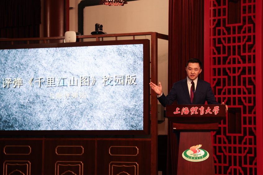6月5日晚,上海评弹团携中篇评弹《千里江山图》走进绿瓦大礼堂。作为江南曲艺瑰宝与现代红色题材的完美融合,该作品以细腻婉转的吴侬软语和跌宕起伏的弹唱艺术,生动再现了革命年代的峥嵘岁月。艺术家们通过“说、噱、弹、唱”的独特表现手法,将书中人物的家国情怀与革命智慧展现得淋漓尽致。三弦琵琶的悠扬旋律与扣人心弦的故事情节相得益彰,令在场师生无不为之动容。