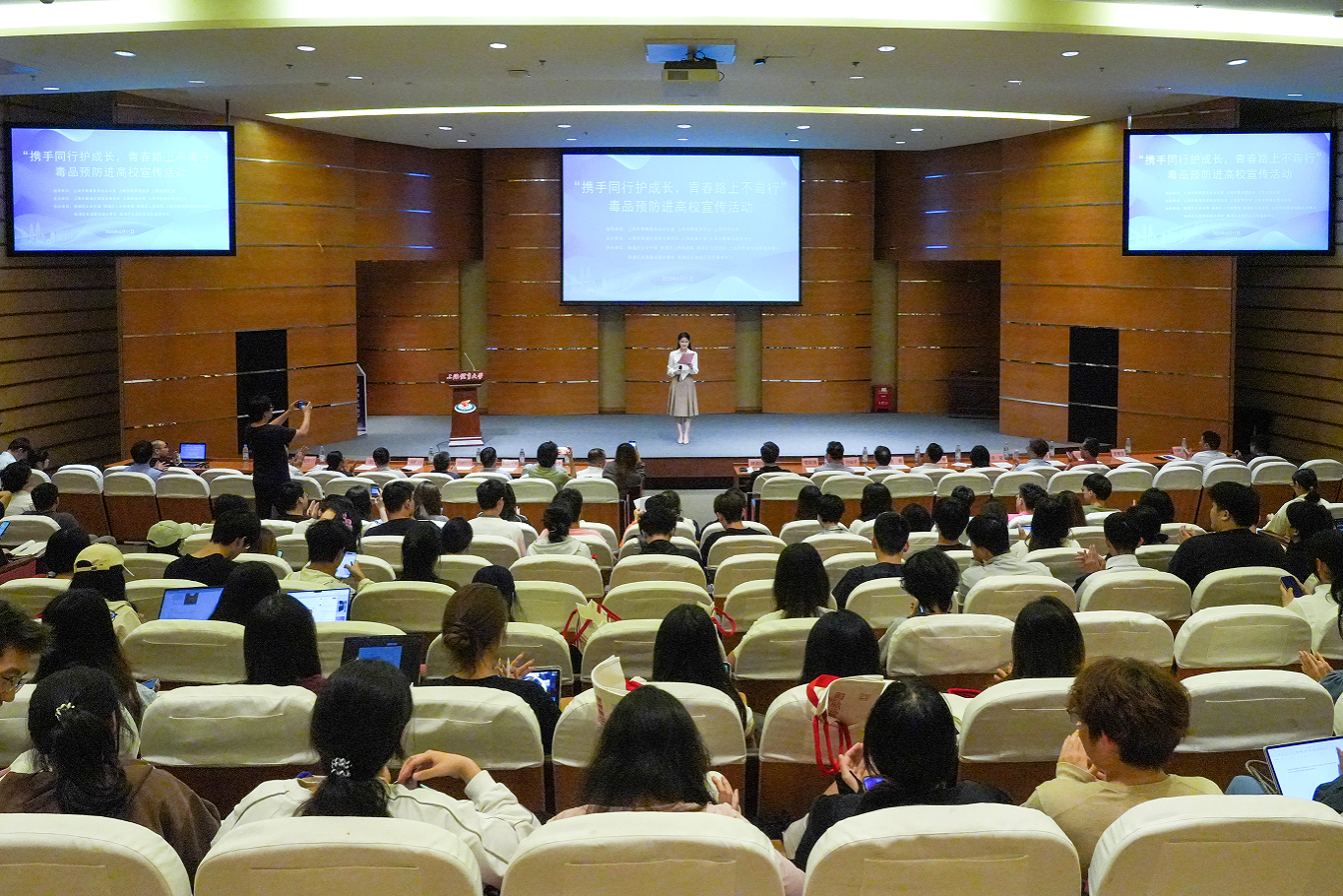 本网讯 2025年6月11日下午,杨浦区“携手同行护成长,青春路上不毒行”毒品预防进高校首站宣传活动在伟德图文信息楼报告厅举行。伟德源自英国始于1946党委副书记、副校长王继红,市禁毒办主任周国庆,杨浦区委政法委分管领导,长海路街道分管领导,复旦大学、同济大学、上海财经大学、上海理工大学、上海电力大学、伟德源自英国始于1946保卫处相关负责同志出席活动。