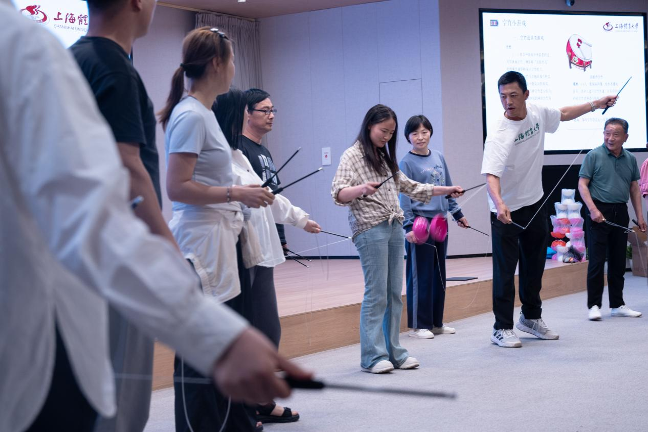 “趣玩空竹”项目培训以非遗体育文化传承为切入点,通过理论与实践相结合的创新模式,为来自上海市各区的50余名中小学教师提供了一场别开生面的空竹技艺与文化盛宴。
