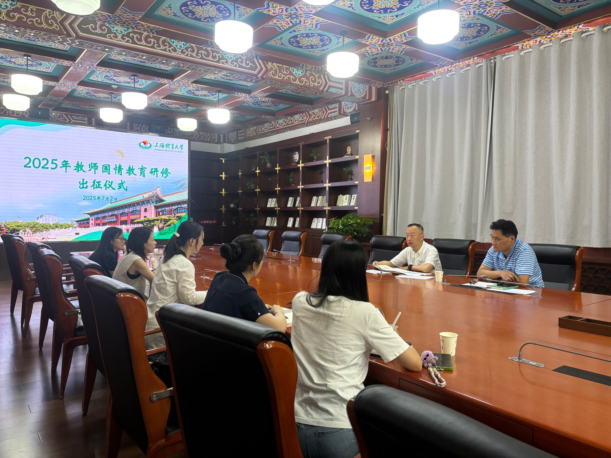 本网讯 为深入贯彻落实习近平总书记关于教育的重要论述和关于教师队伍建设的系列重要指示批示精神,深入贯彻落实党的二十大和二十届二中、三中全会精神以及全国和上海市教育大会精神,增进教师对国情、党情、社情、民情的了解。7月2日上午,学校举行2025年教师国情教育研修出征仪式。党委副书记潘勤出席仪式并讲话,2025年上海市高校教师国情教育研修的学员代表参加仪式。教工部部长、机关党委书记焦振伦主持仪式。