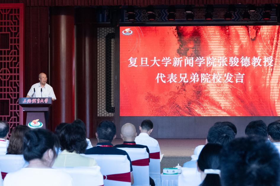 复旦大学新闻学院教授张骏德代表兄弟院校发言,他深情回忆了参与原上海体育学院体育新闻专业初创的细节。他表示,体育新闻教育从“零”起步,到如今已成为特色鲜明的学科,每一步都走得十分扎实。他指出,未来要“守正创新”,既要坚守新闻真实性、思想性的内核,又要主动拥抱数字化、智能化变革。