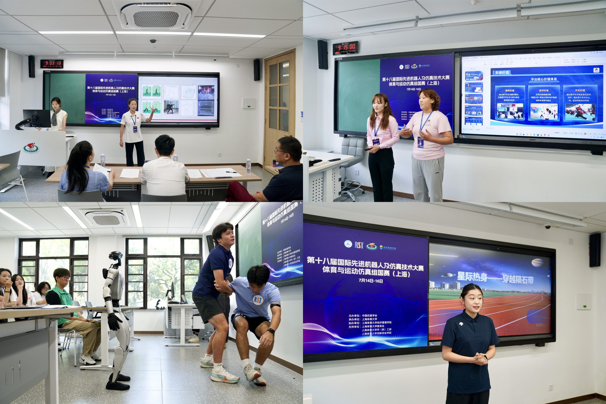 2025年7月16日,64支参赛队伍通过抽签分为健康服务系统虚拟仿真、运动与人机交互方案、智慧体育教学与训练模拟、AI+体育知识科普创意四个赛场同步进行展示。