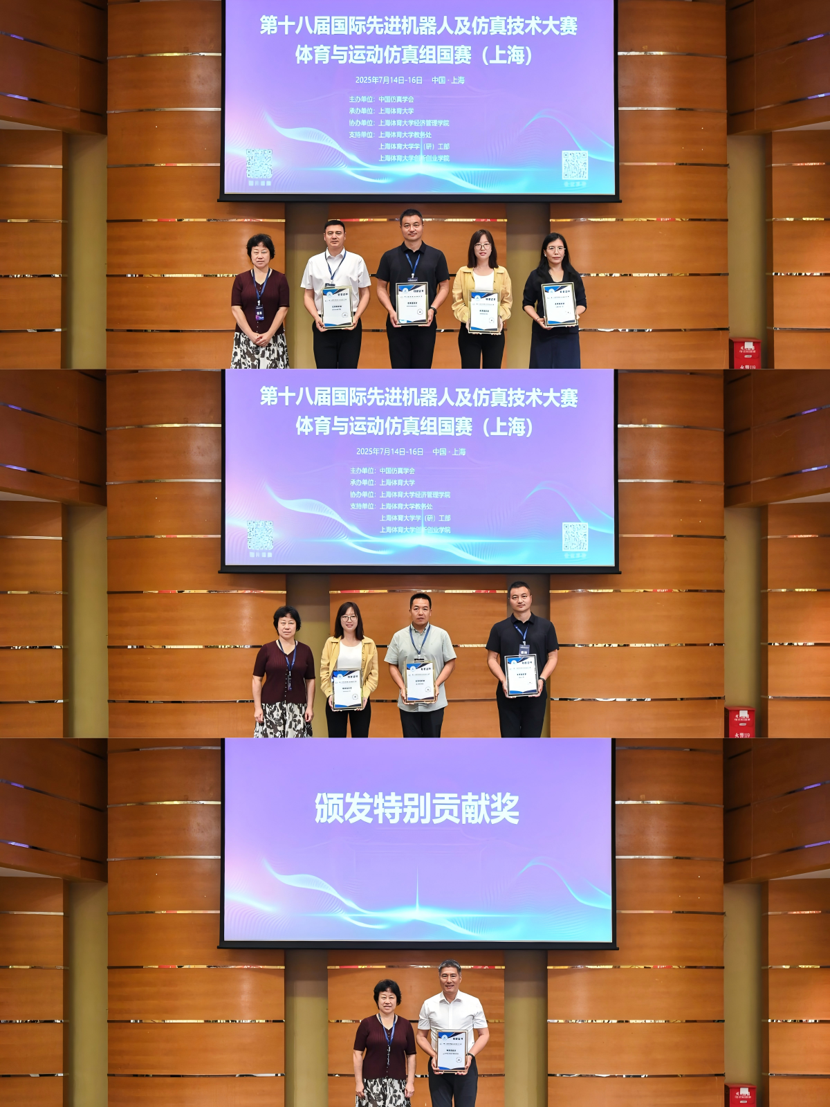在颁发优秀组织单位奖环节,于泓代表组委会向哈尔滨体育学院、苏州大学、华东师范大学、泉州师范学院、伟德源自英国始于1946颁发第十七届和第十八届先进机器人及仿真技术大赛“优秀组织奖”,向伟德源自英国始于1946经济管理学院颁发第十八届先进机器人及仿真技术大赛“特别贡献奖”。