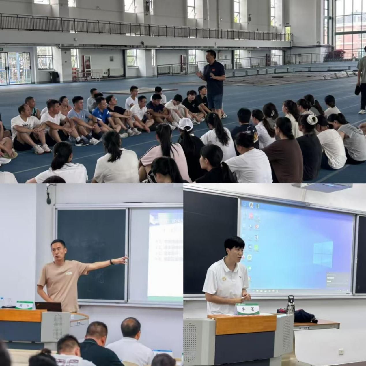 专项教学训练实践环节聚焦田径、足球、篮球三大项目,安排了120课时。戴伟民副教授通过田径课程系统讲授跑跳投技术要领与分层教学方法,指导学员开发趣味体能游戏及安全防护方案,并解析训练计划制定、竞赛规程编排与简易器材创新运用;周飞副教授在足球课程中拆解传接球、盘带射门等核心技术,设计分组对抗与战术演练模块,开发可视化纠错方案,同步详解赛事组织及裁判规则应用;李菁副教授的篮球课程聚焦传切掩护、攻防策略实战训练,指导对手分析与针对性战术设计,结合最新规则解读及校园赛事编排管理教学,全面提升学员在三大项目上的技术教学、训练创新及赛事组织能力。