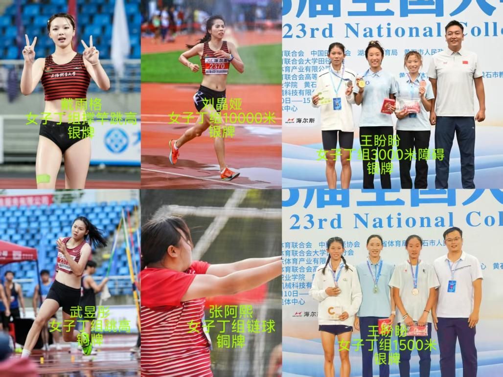 女子选手同样表现抢眼,吴安琪在100米栏比赛中跑出13.57秒的佳绩获得金牌,这位入学仅一年的新秀已获得全运会参赛资格;王盼盼在1500米和3000米障碍赛中均获得银牌;刘晶娅、戴雨格、武昱彤和张阿熙等选手也在各自项目中斩获奖牌。