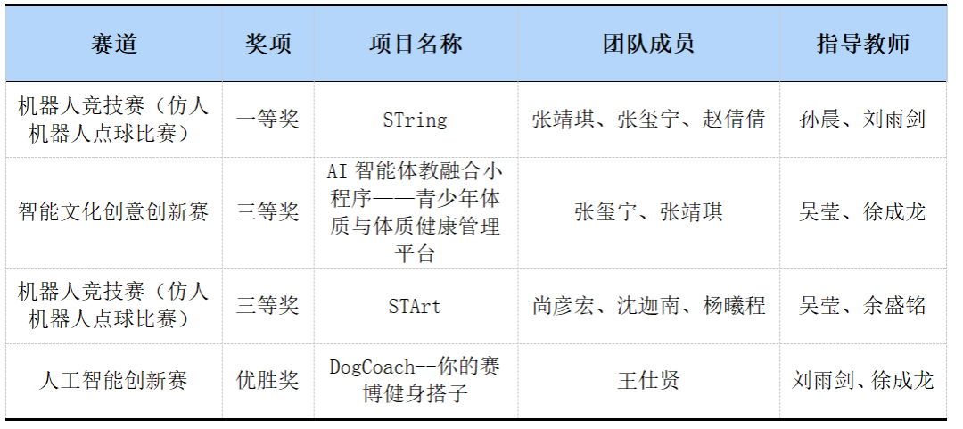 决赛吸引了来自全国各地高校的1200余支队伍、3000余名学生同台竞技,赛程紧凑,竞争激烈。伟德学生沉着应对,在“机器人竞技赛(仿人机器人点球比赛)”赛道中,由张靖琪、张玺宁、赵倩倩同学组成的“STring”团队凭借出色的技术水平与稳定的发挥,摘得桂冠,荣获全国一等奖。在“机器人舞蹈”赛道中,智慧体育工程学院(筹)与艺术学院教师联合指导的团队,将艺术创意与机器人编程有机结合,取得了优异成绩,生动体现了“工科+体育+艺术”多学科交叉融合育人模式。