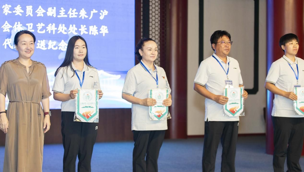 仪式上,全国校园足球专家委员会副主任朱广沪、上海市教委体卫艺科处处长陈华共同向学员代表赠送了纪念品,表达了对参训教师的鼓励与期望。