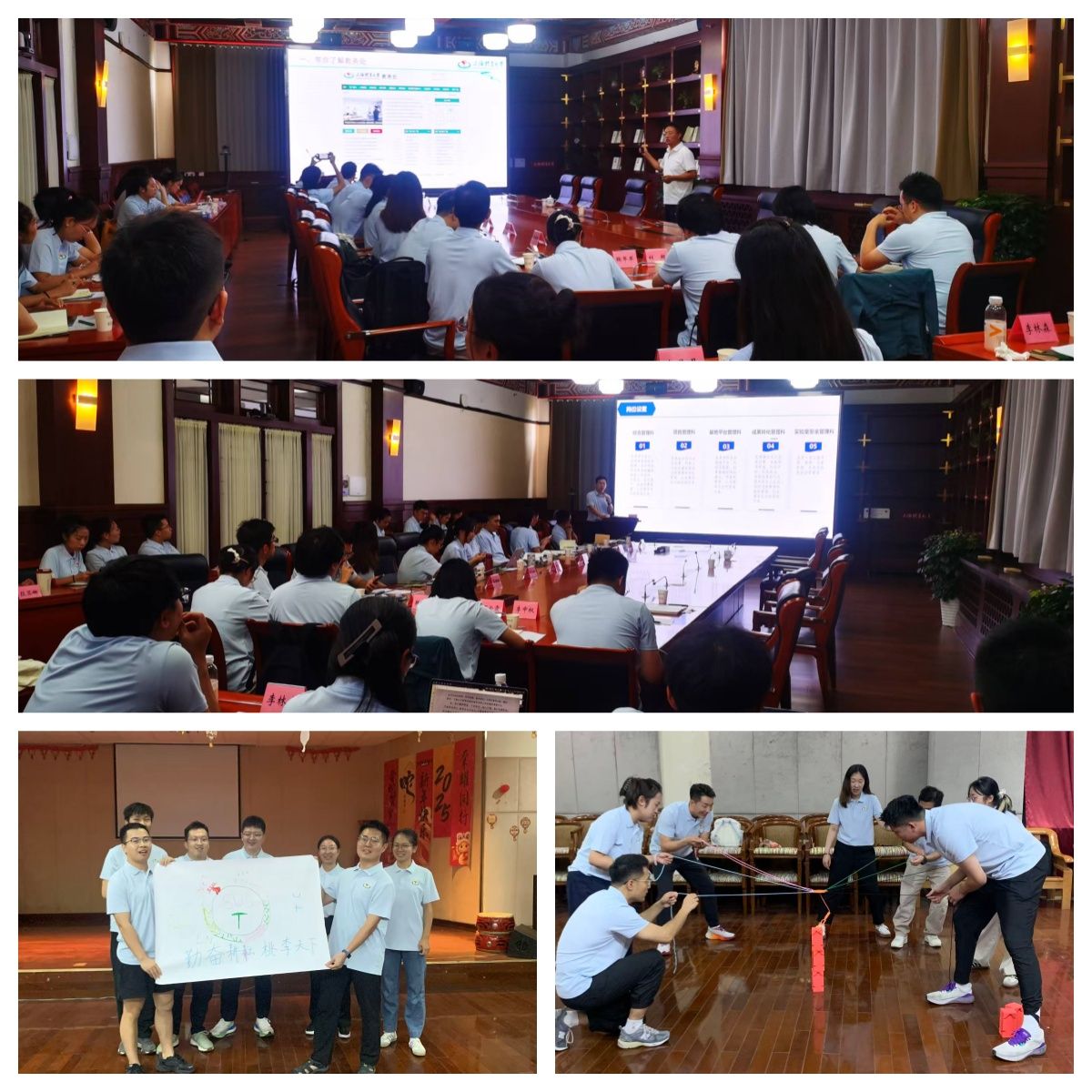 在团队建设版块,由体育教育学院教师策划、组织开展了一堂拓展训练课,帮助大家相互认识、加深了解,激发团队活力与斗志,提高团结协作能力和自我提升意识。